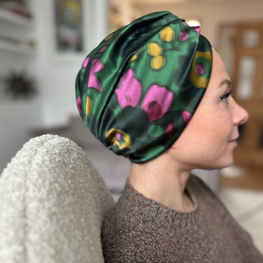 Little Susan Twisted Silk Turban & Head wrap - Liberty of London Green Betsy Shadow print in Belgravia Silk Satin