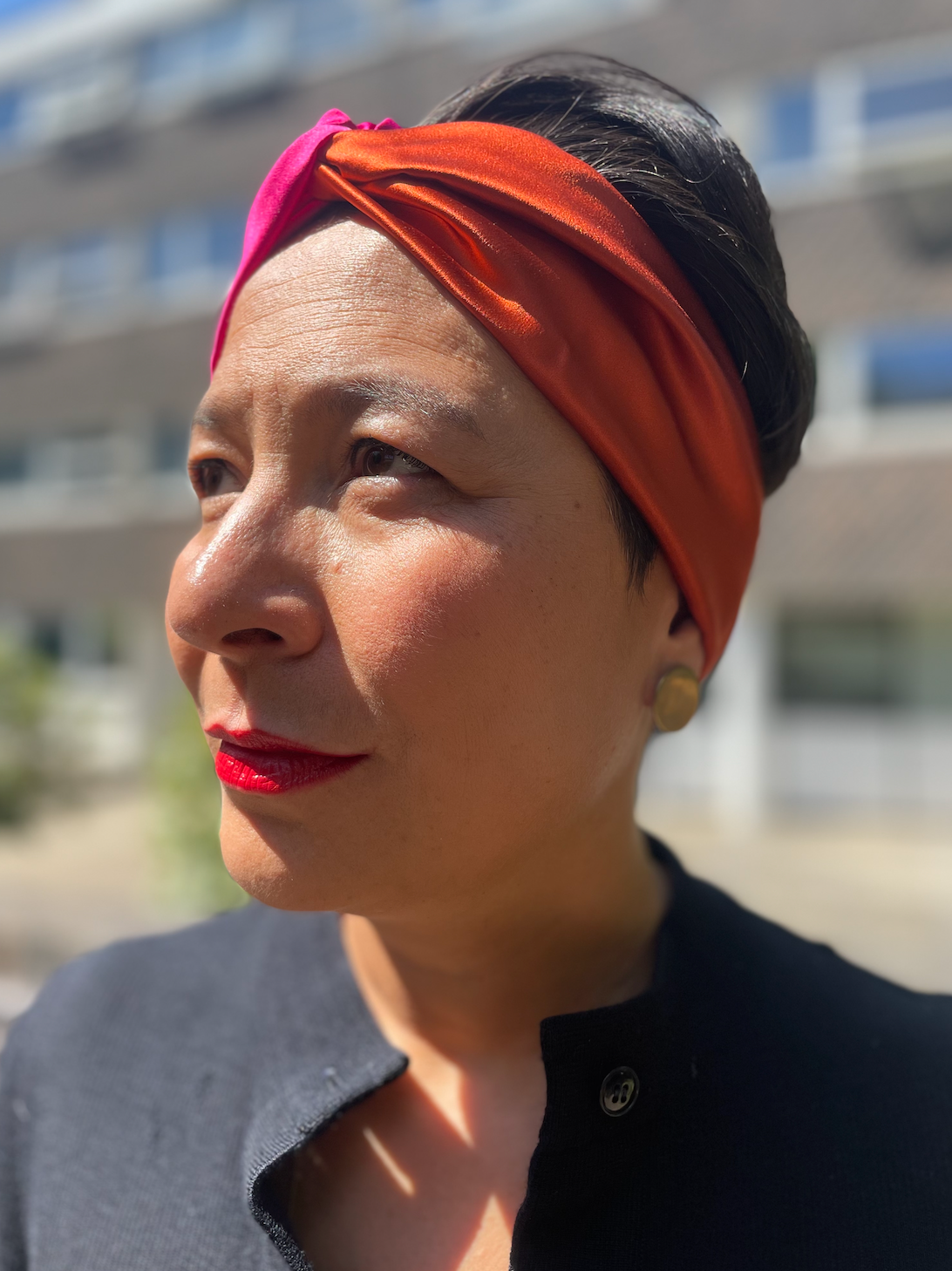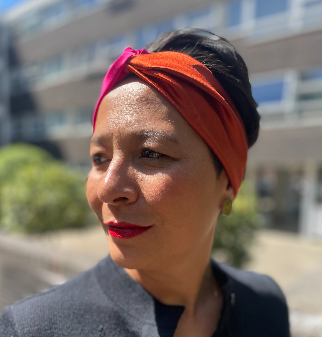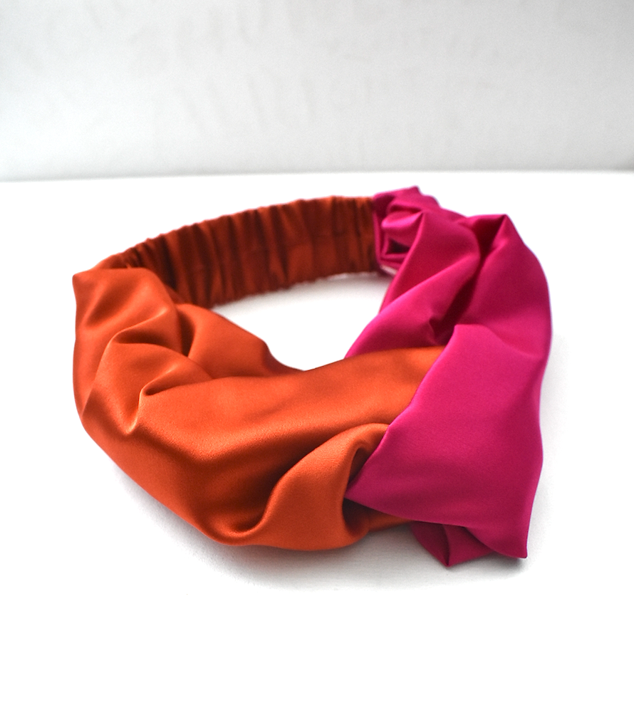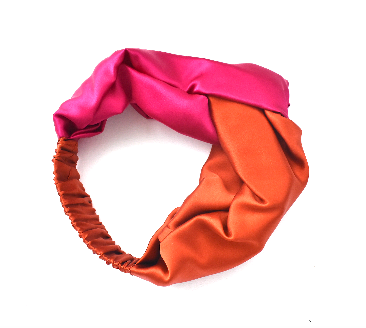 Pure Silk Burnt Orange and Fuchsia Pink Split Twisted Turban hairband and neck scarf in Mulberry Silk - 100% Pure Silk-Satin