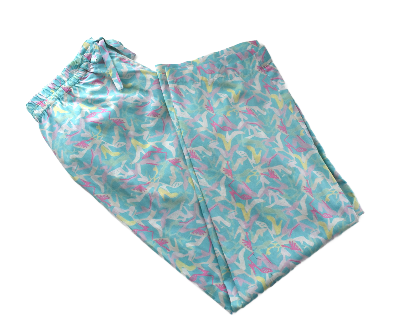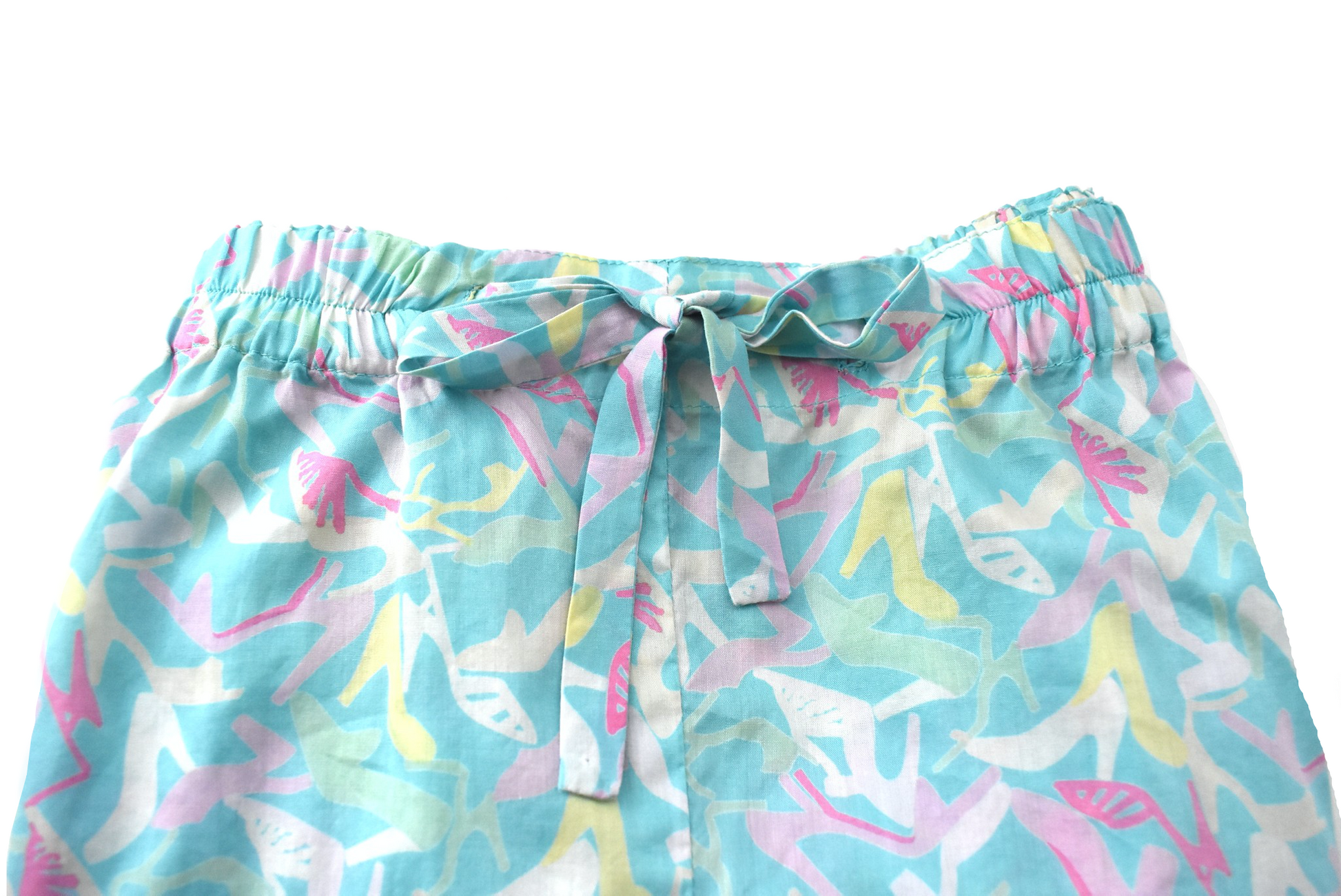 Silk & Lawn pyjama bottoms are made with 100% Tana Lawn™ cotton. We recommend machine washing on a cool wash or up 30 degrees with a detergent designed for delicate fabrics. Do not bleach. Medium iron. Do not tumble dry. Line dry. Dry clean.