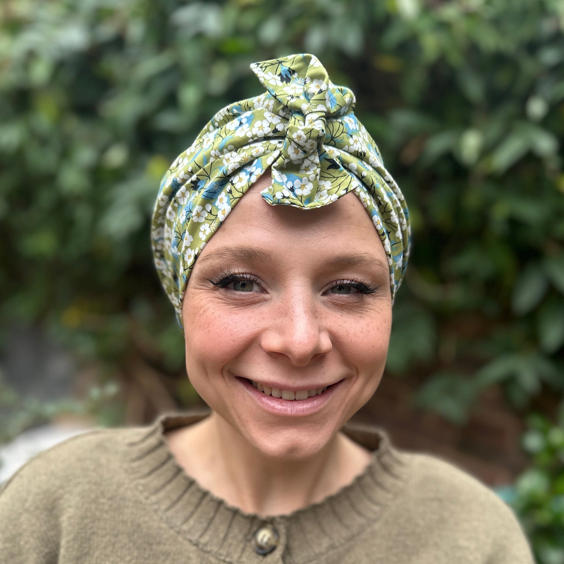 Ladies Turban Hat - Liberty of London Classic Green Mitsi floral print