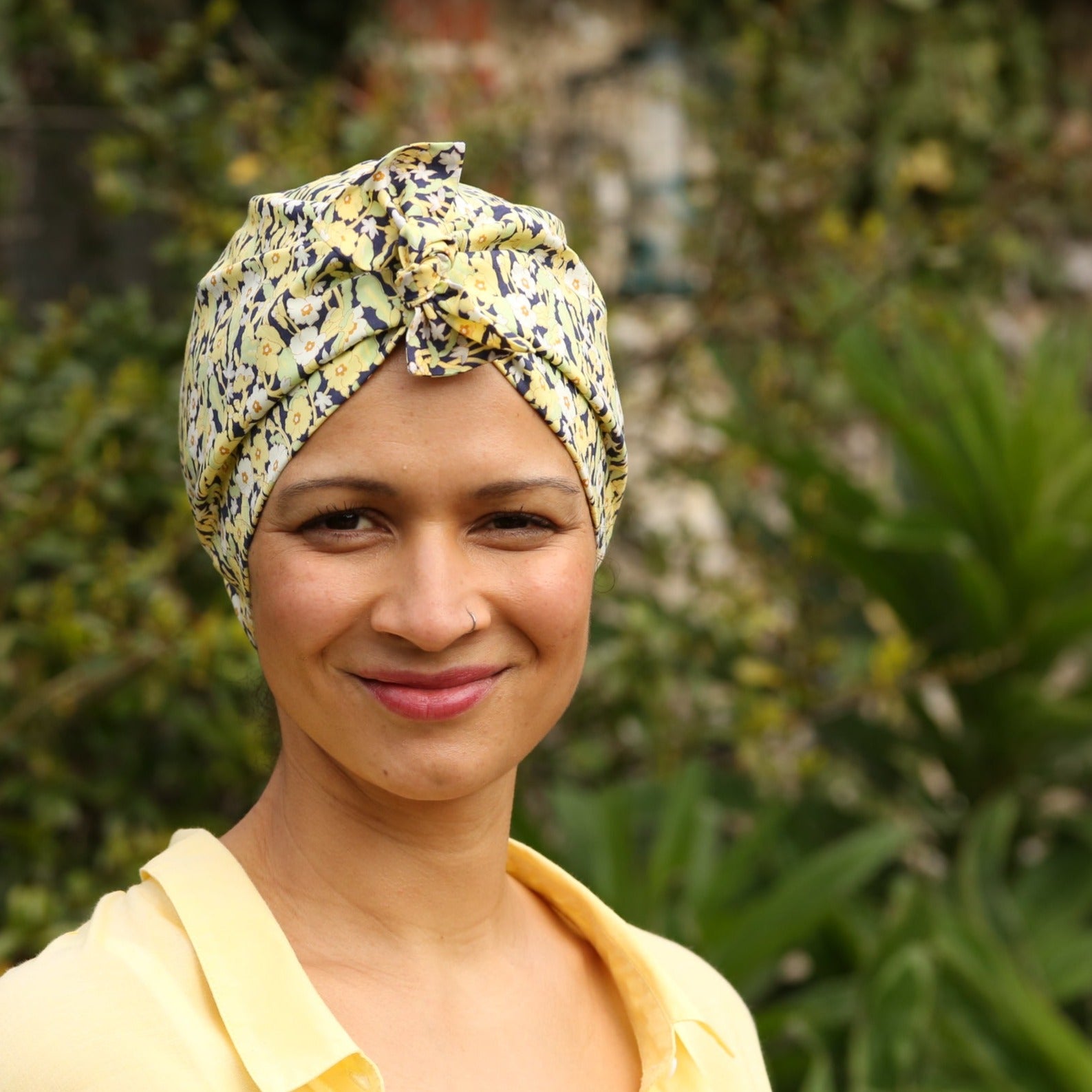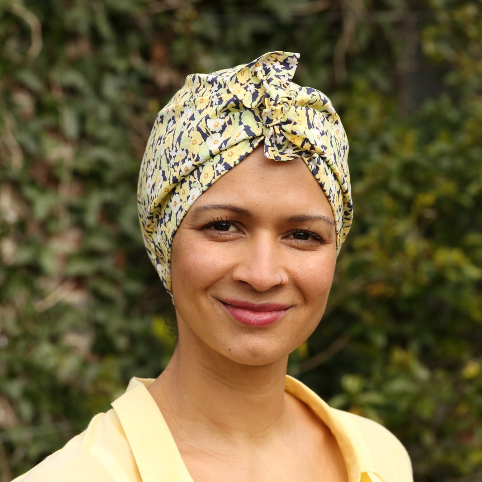 Beautiful, classic, handmade turban made from the finest Liberty of London Tana Lawn cotton fabric, lined with a choice of 100% pure cotton or 100% pure silk for a wonderfully luxurious, comfortable and quality finish.