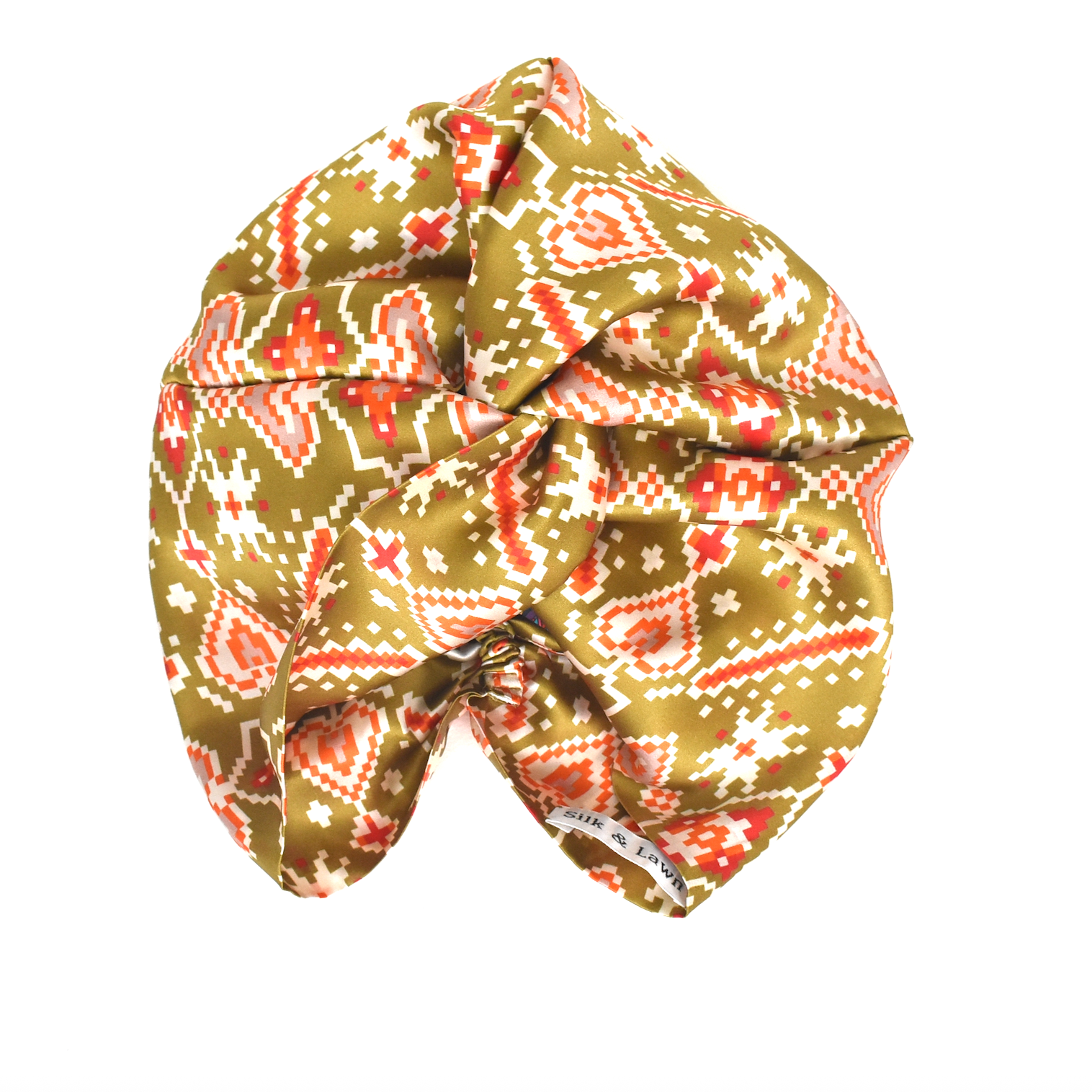 Little Susan Twisted Silk Turban & Head wrap - Liberty of London Gold Tapestry print in Belgravia Silk Satin