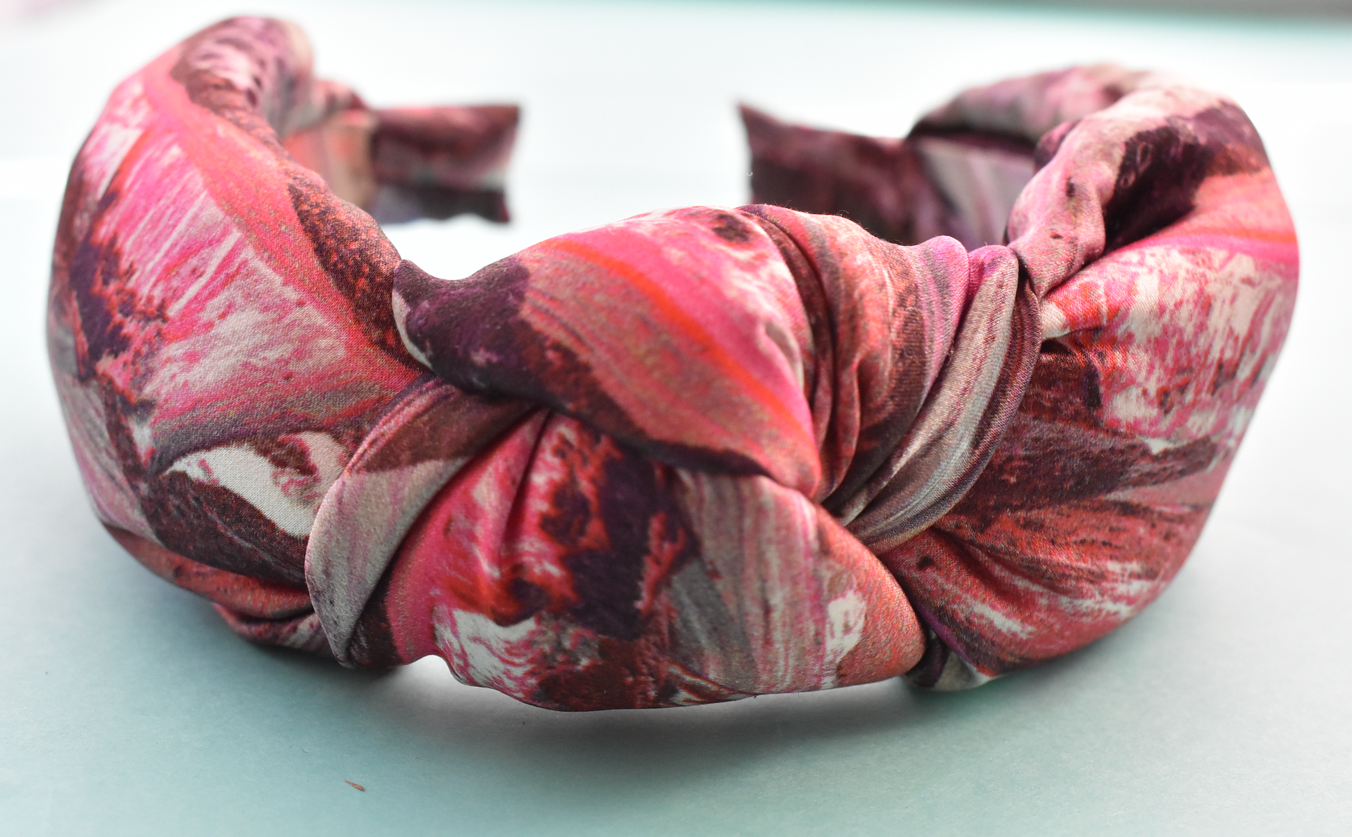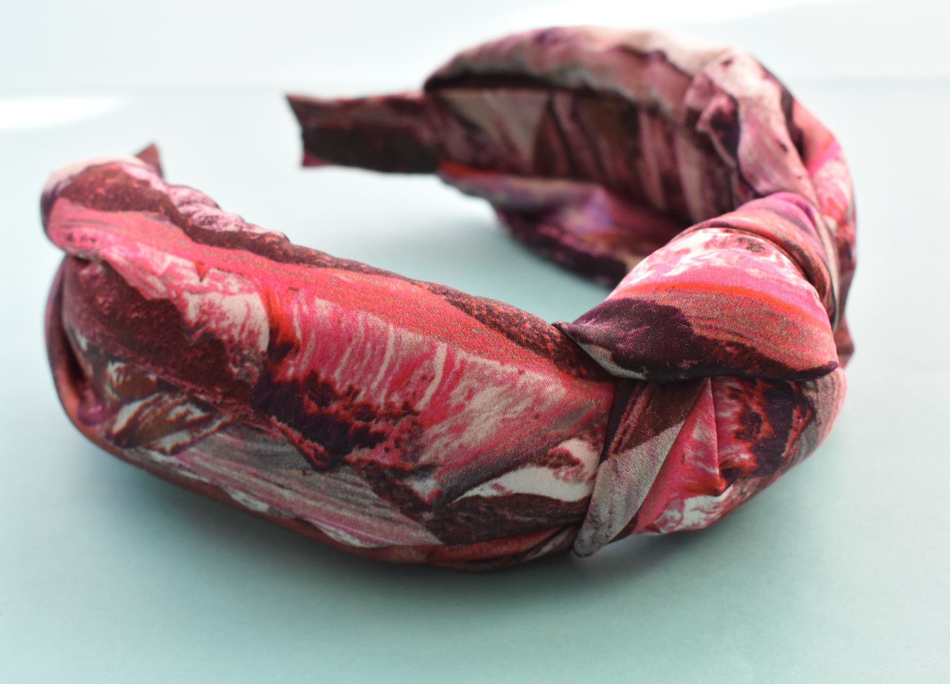 Luxury Silk Knot Alice band - Liberty of London Artist Manning pink printed silk