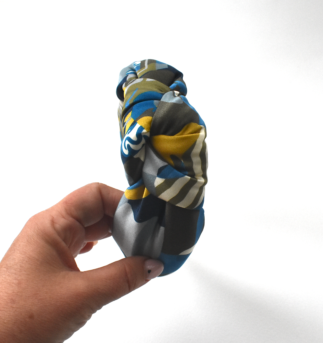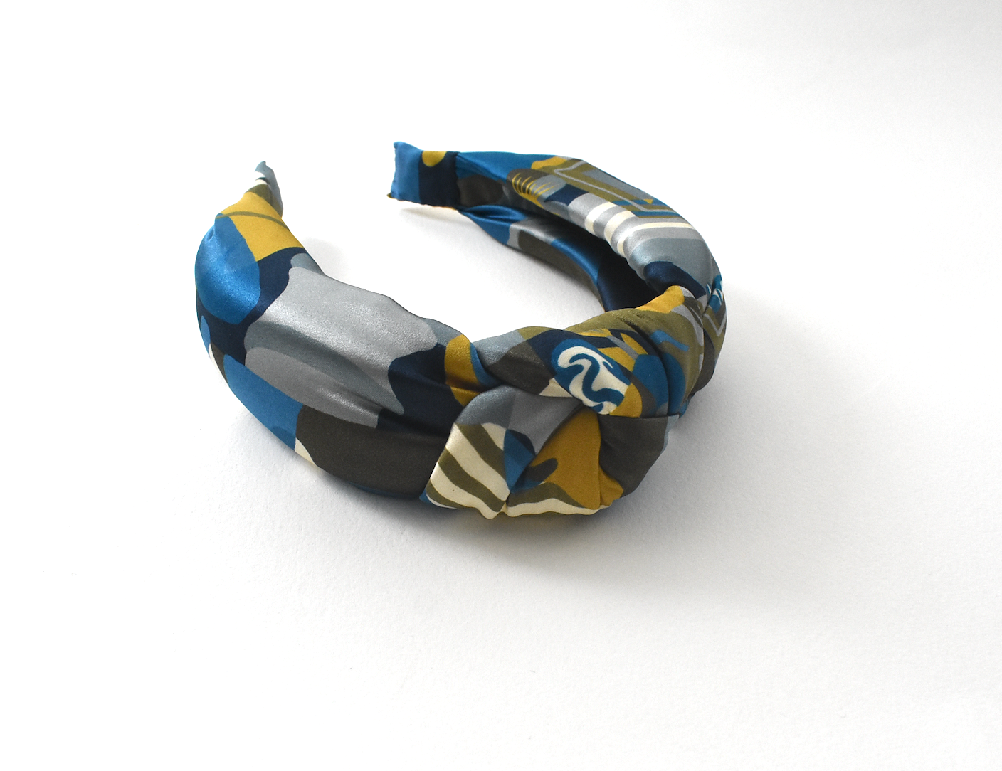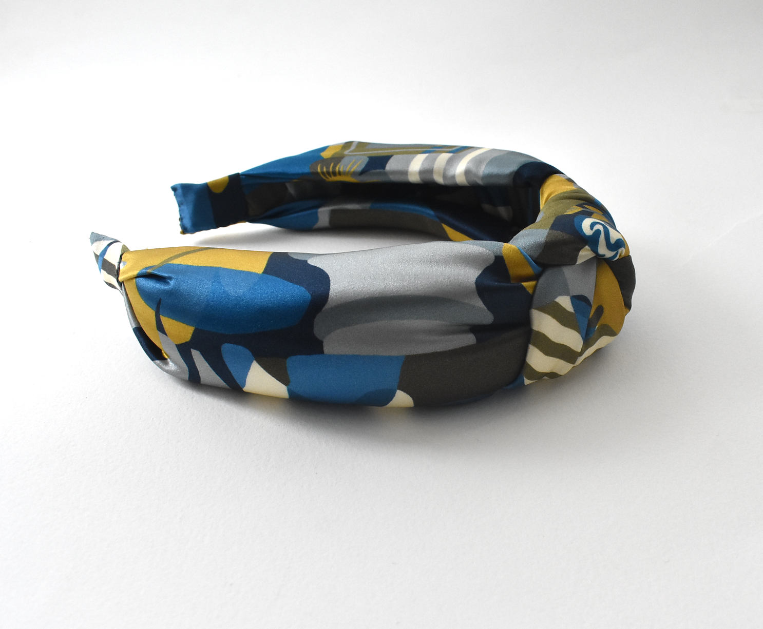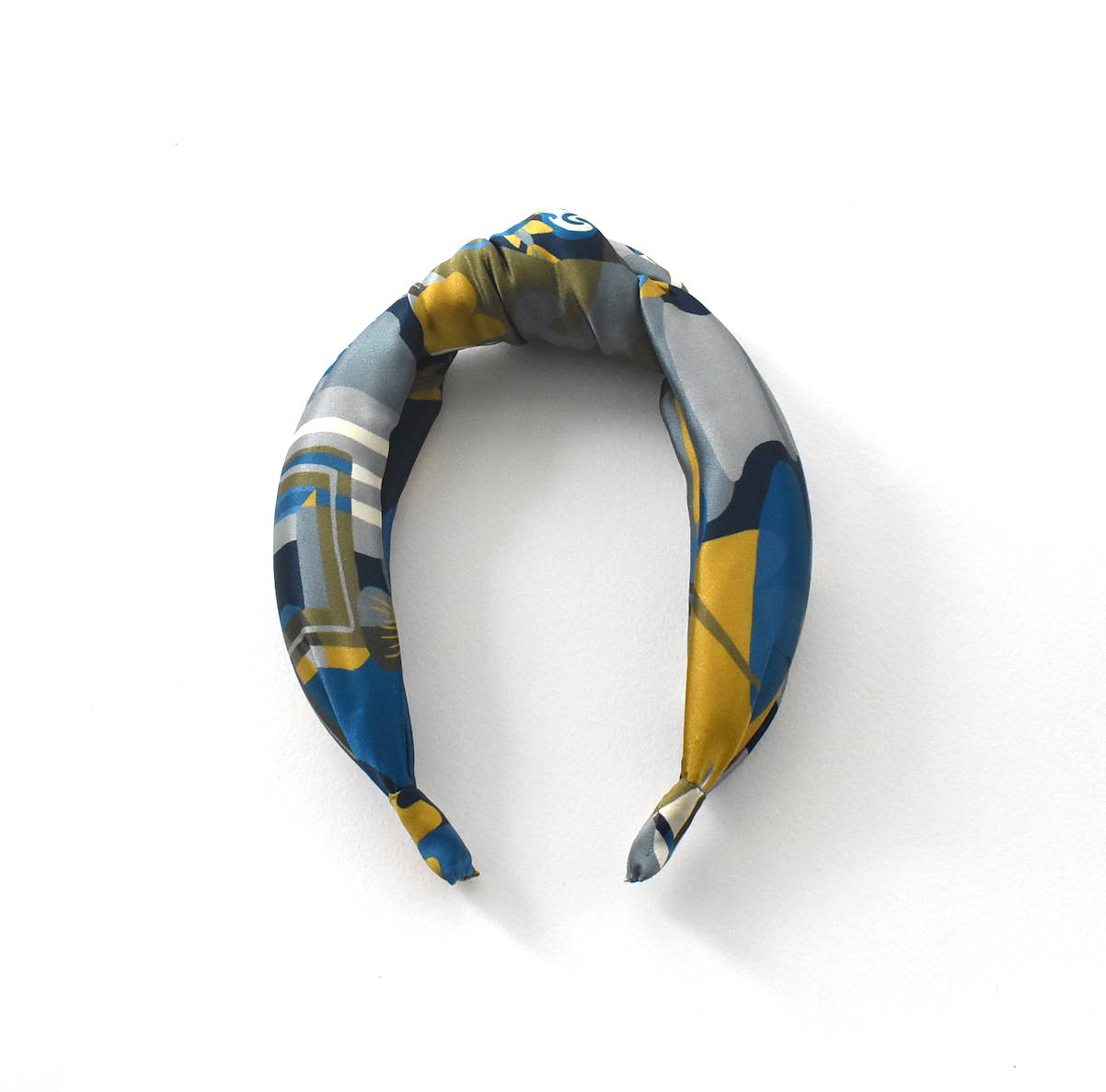 Luxury Silk Crepe Knot Alice band - Liberty of London Curation in Gold and Blue silk crepe