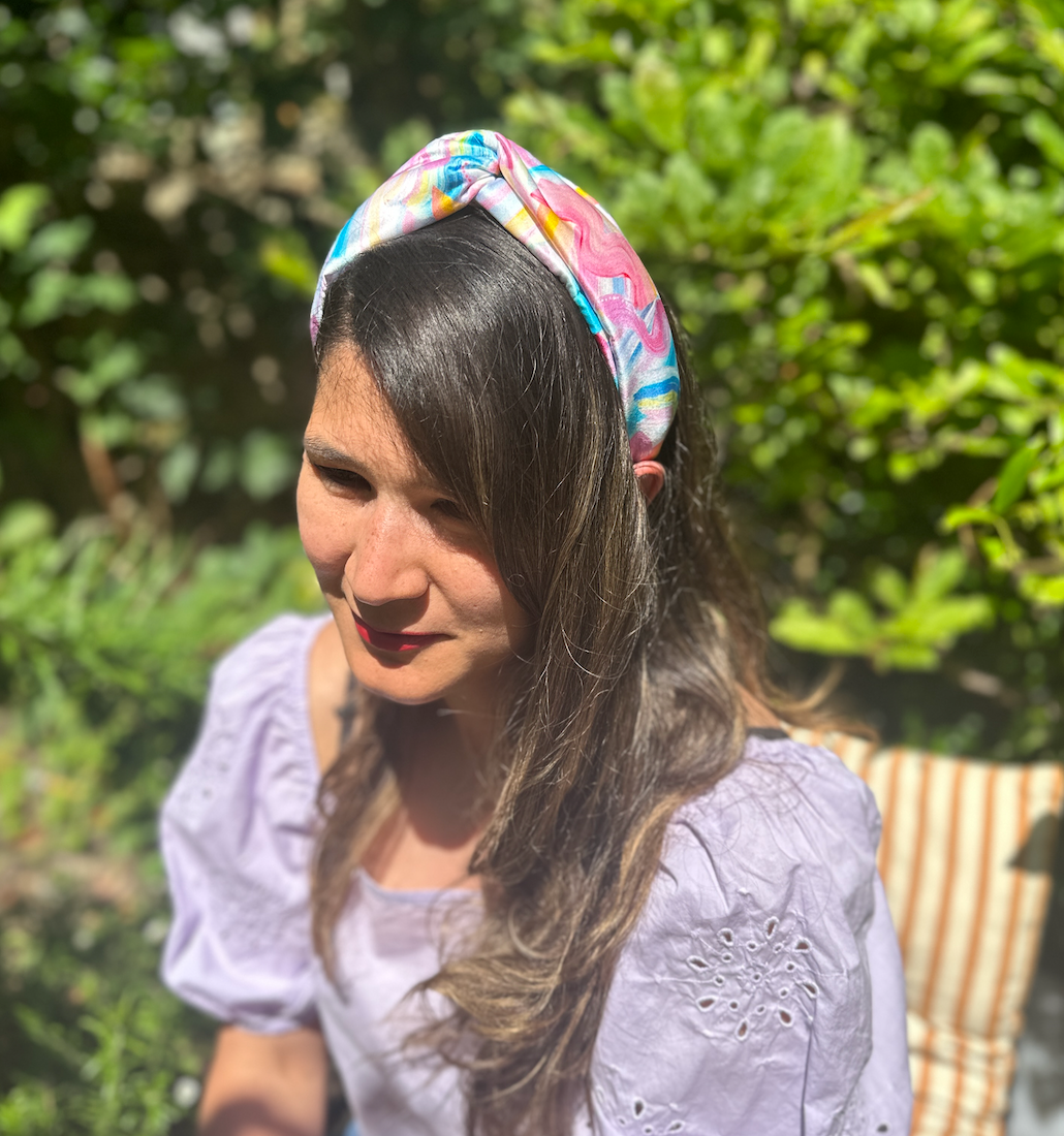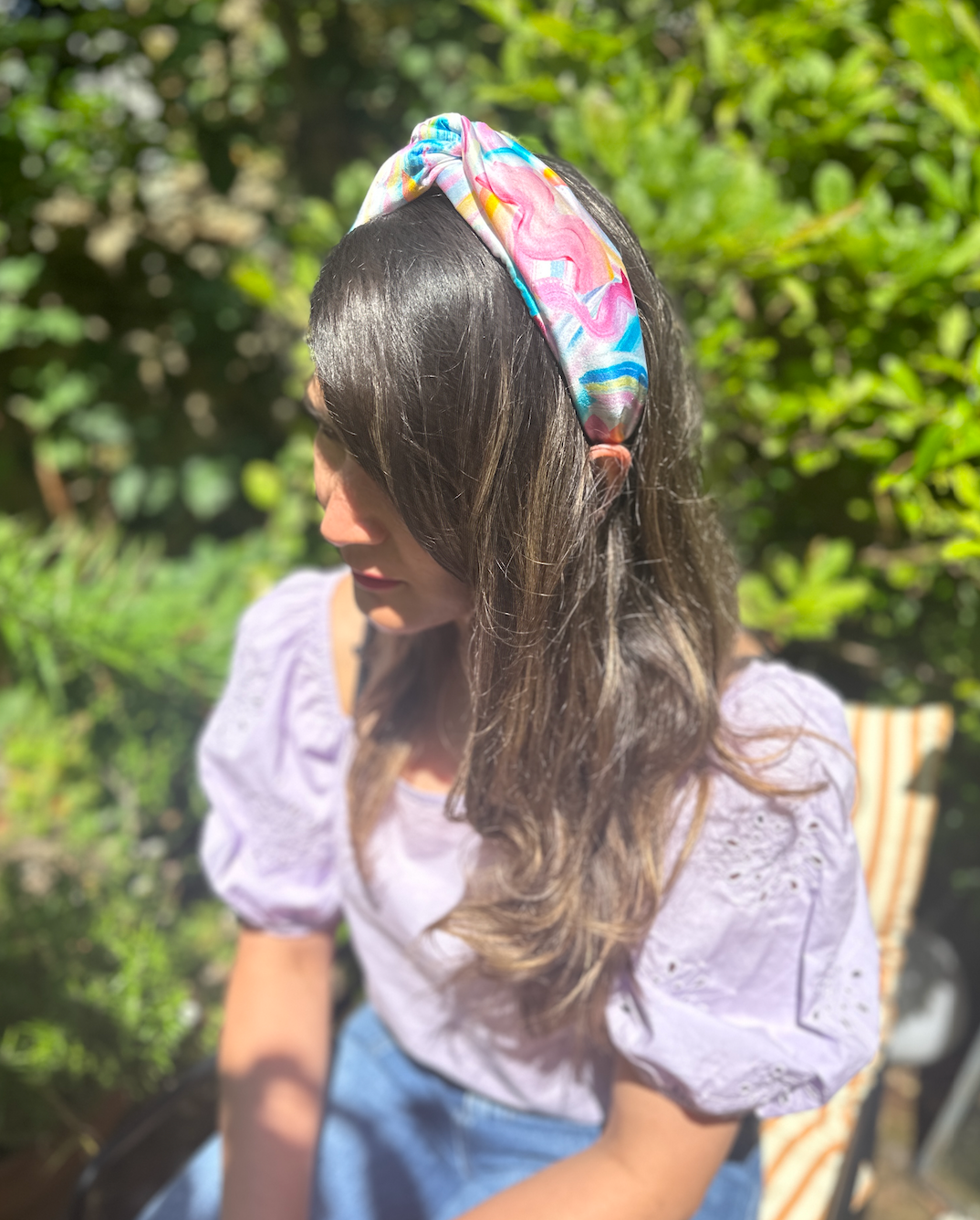 Luxury Silk Twisted Alice band - Grafitti Liberty Artist print on Silk-Satin