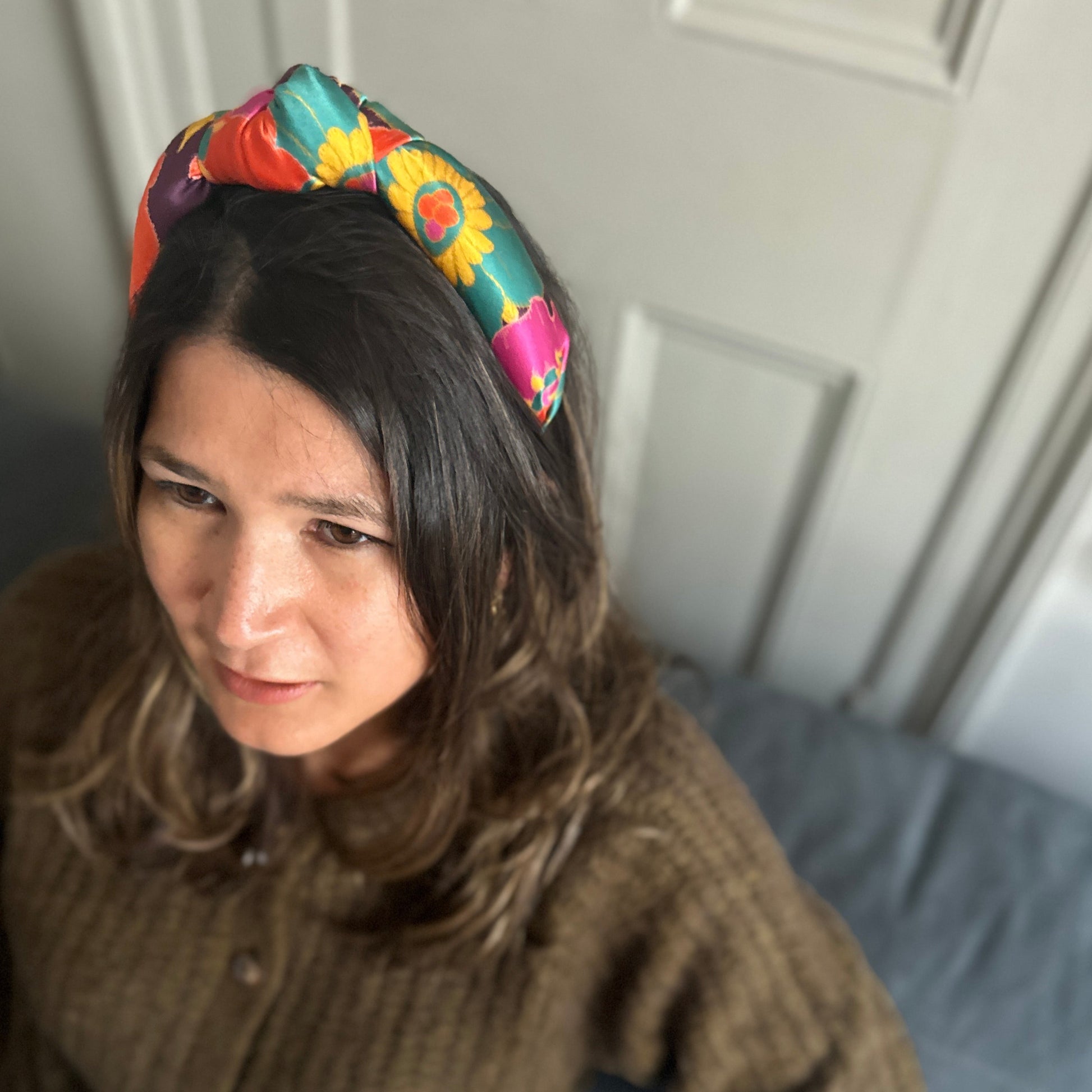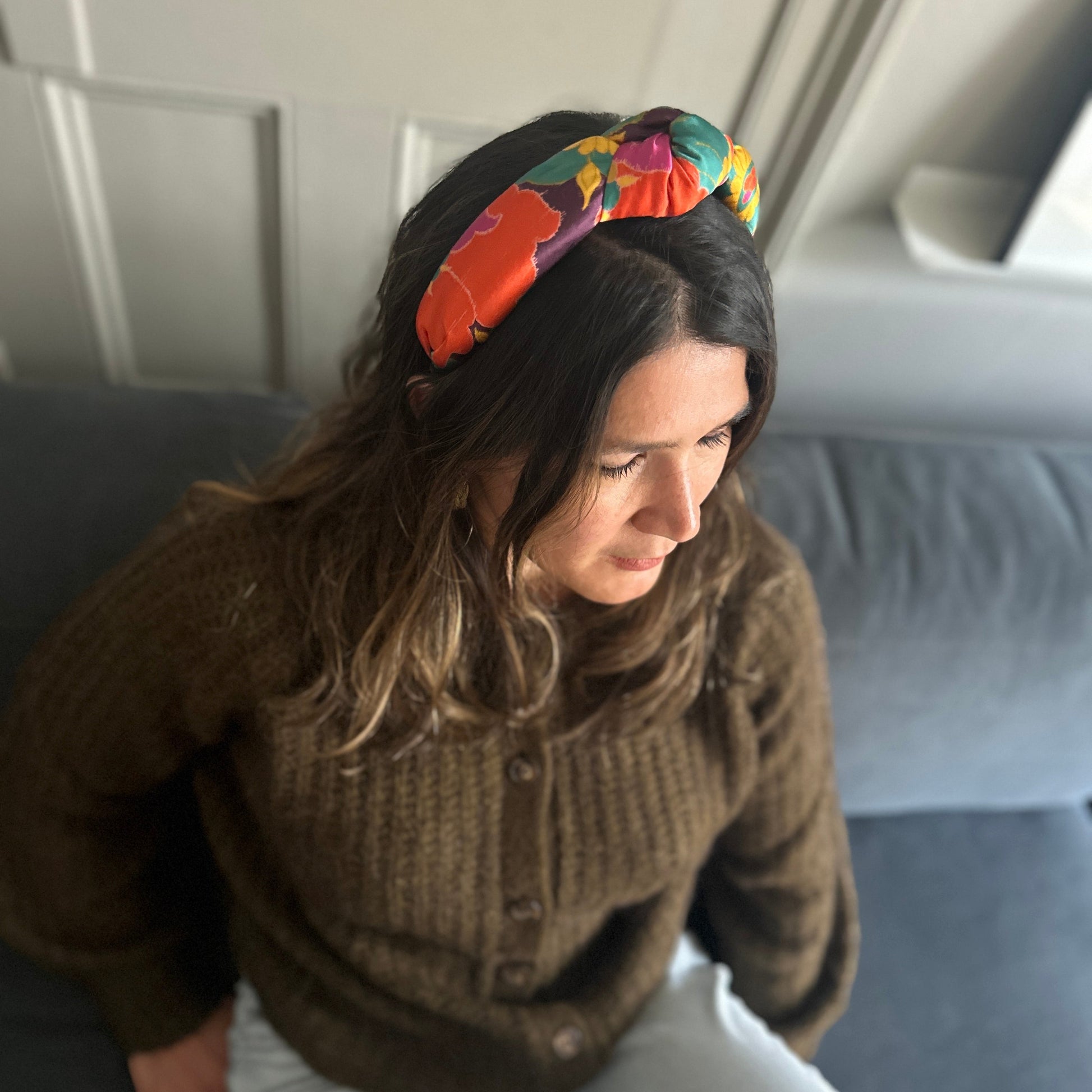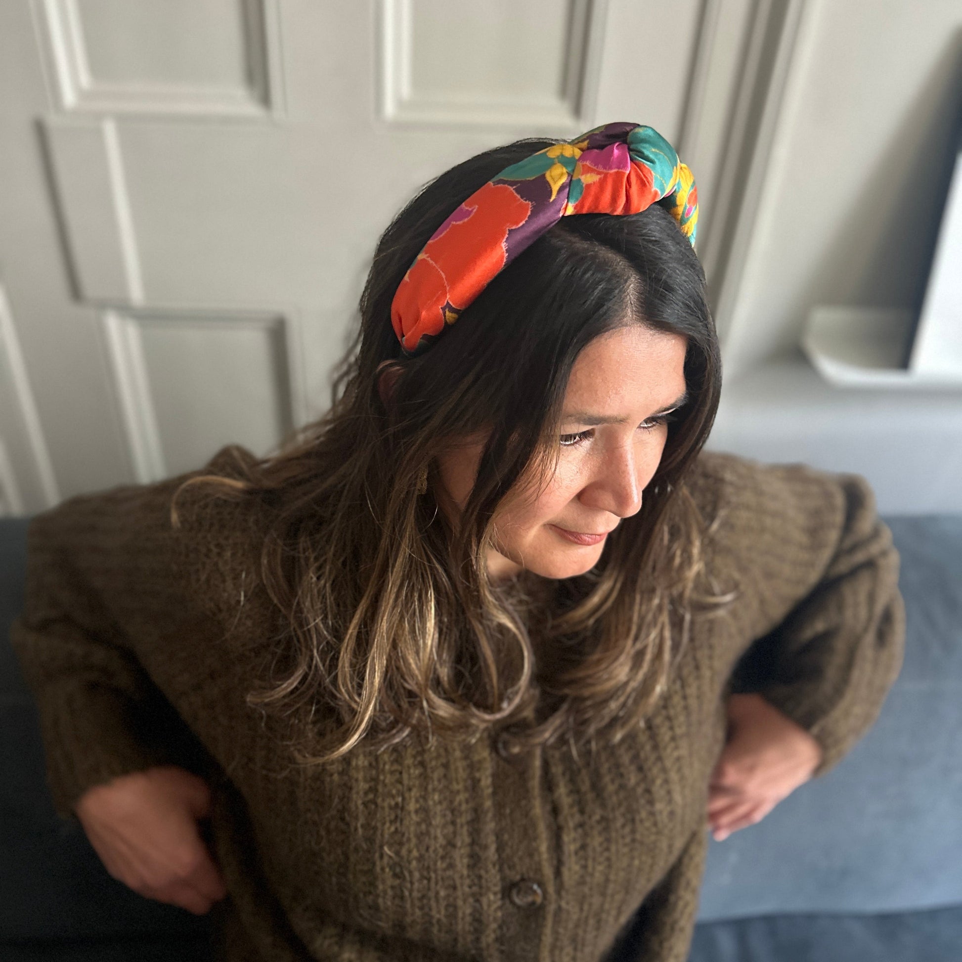 Luxury Silk Twisted or Knot Alice band in Bright Floral Liberty of London Silk Satin