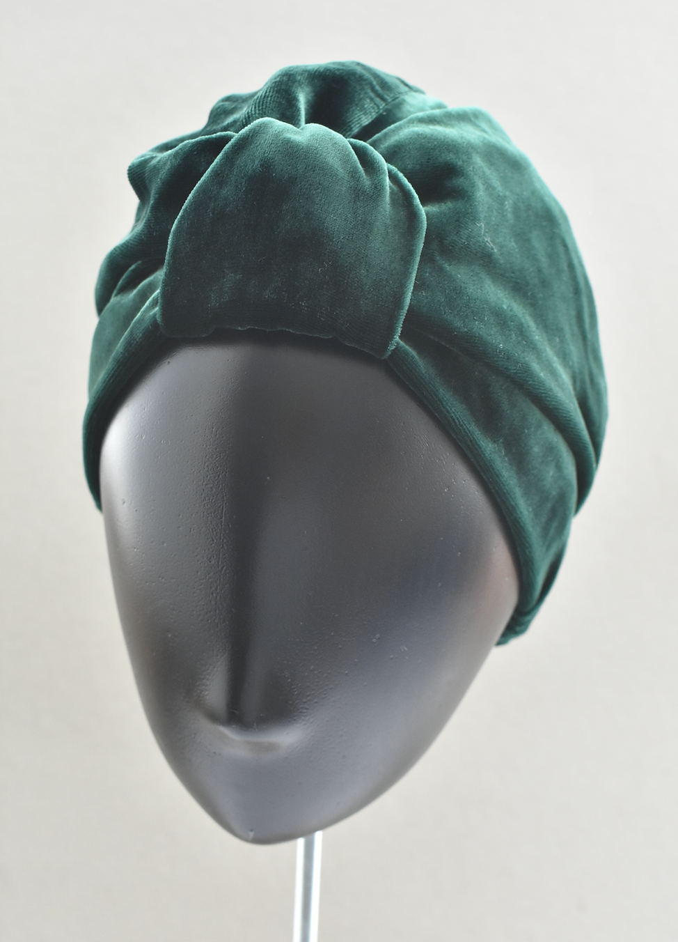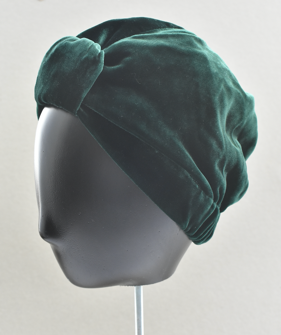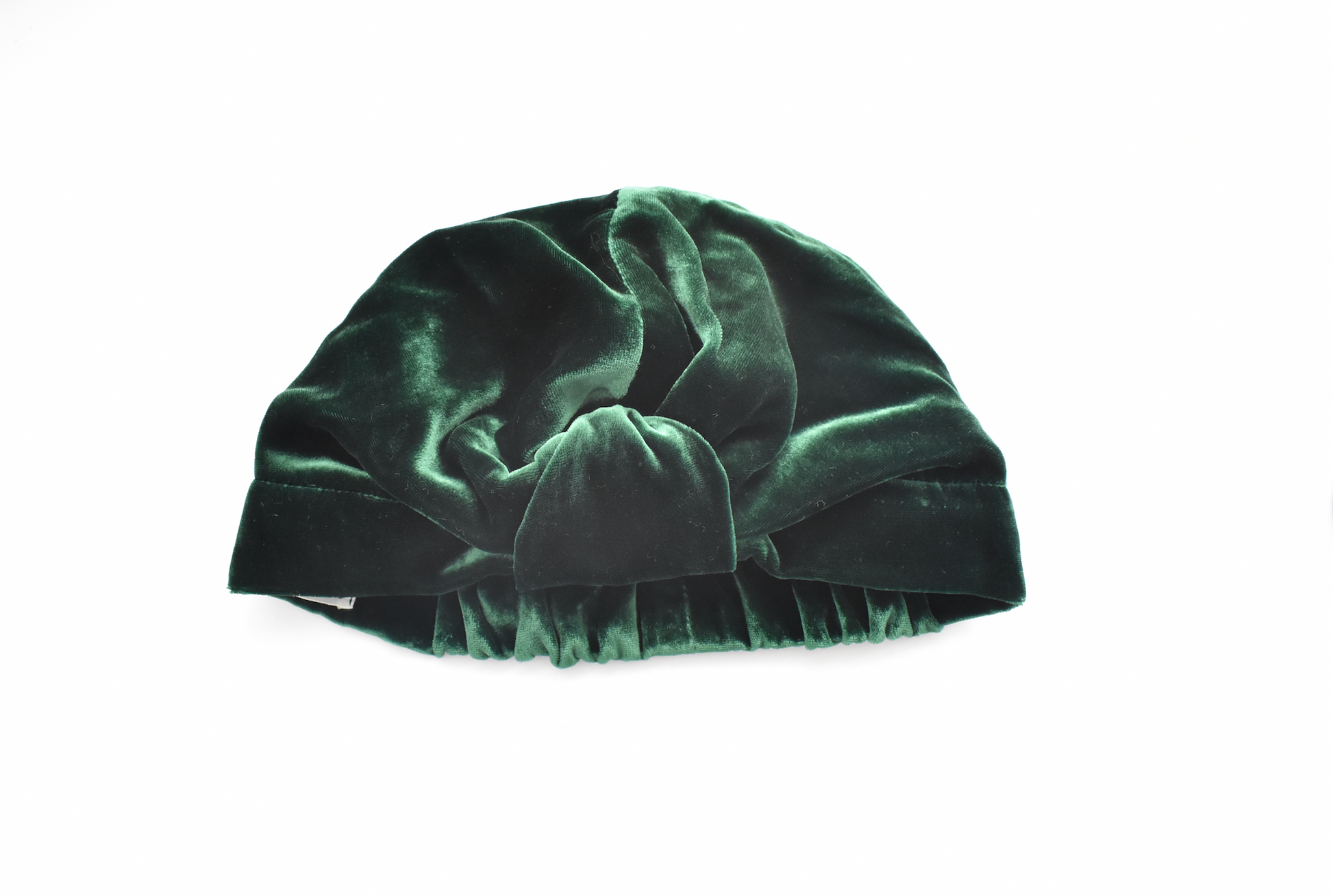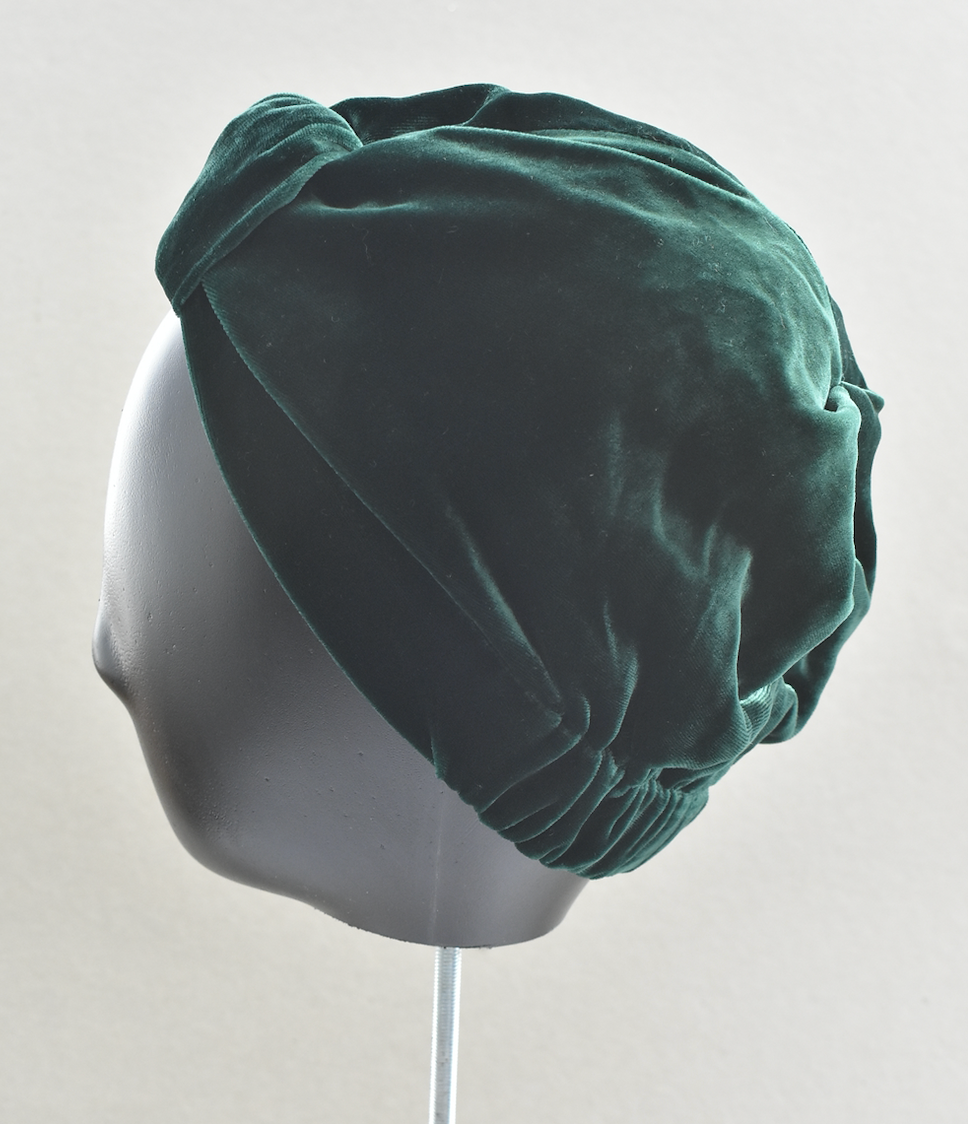 Luxury silk-velvet turban in a beautiful rich and elegant emerald green velvet.