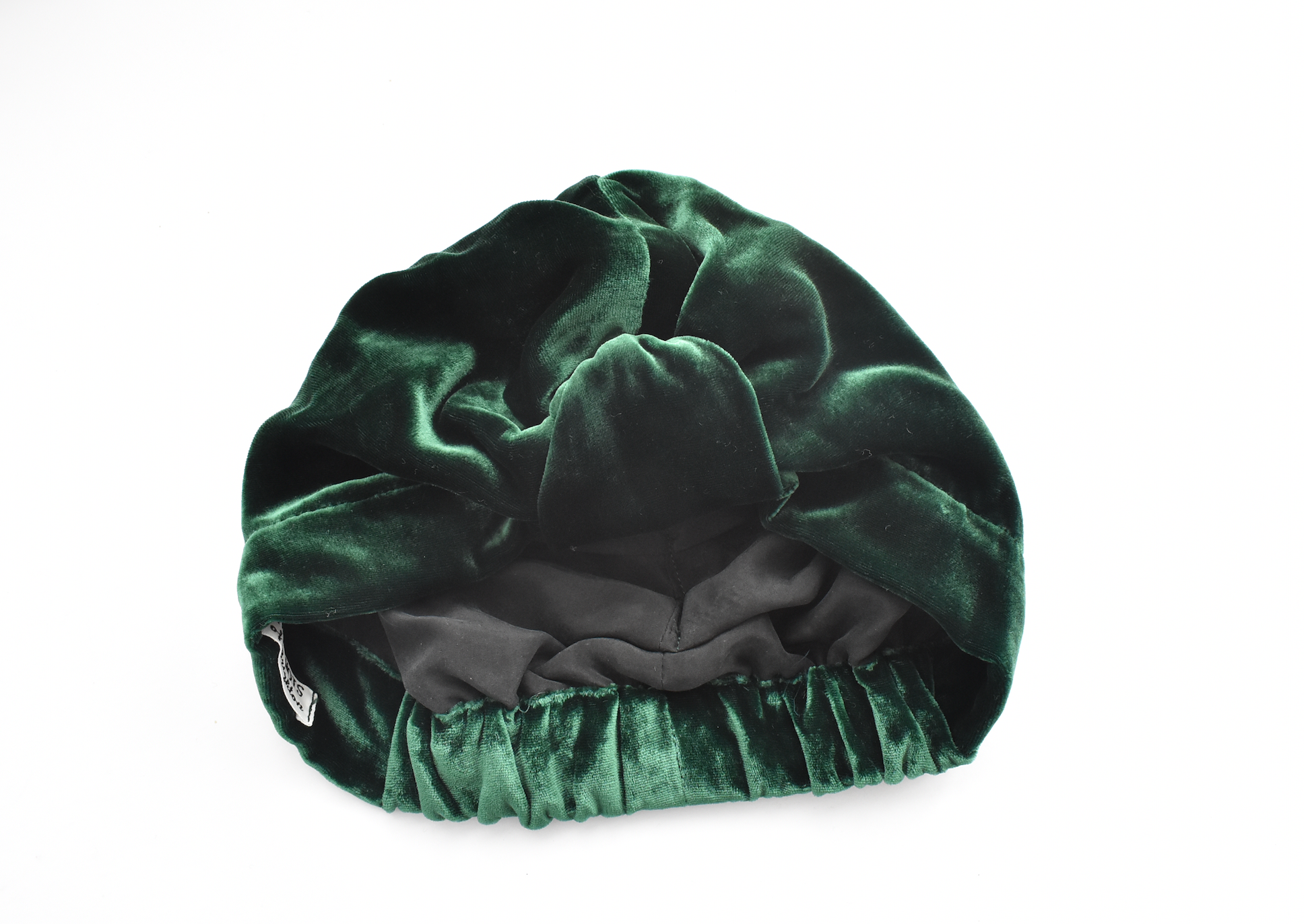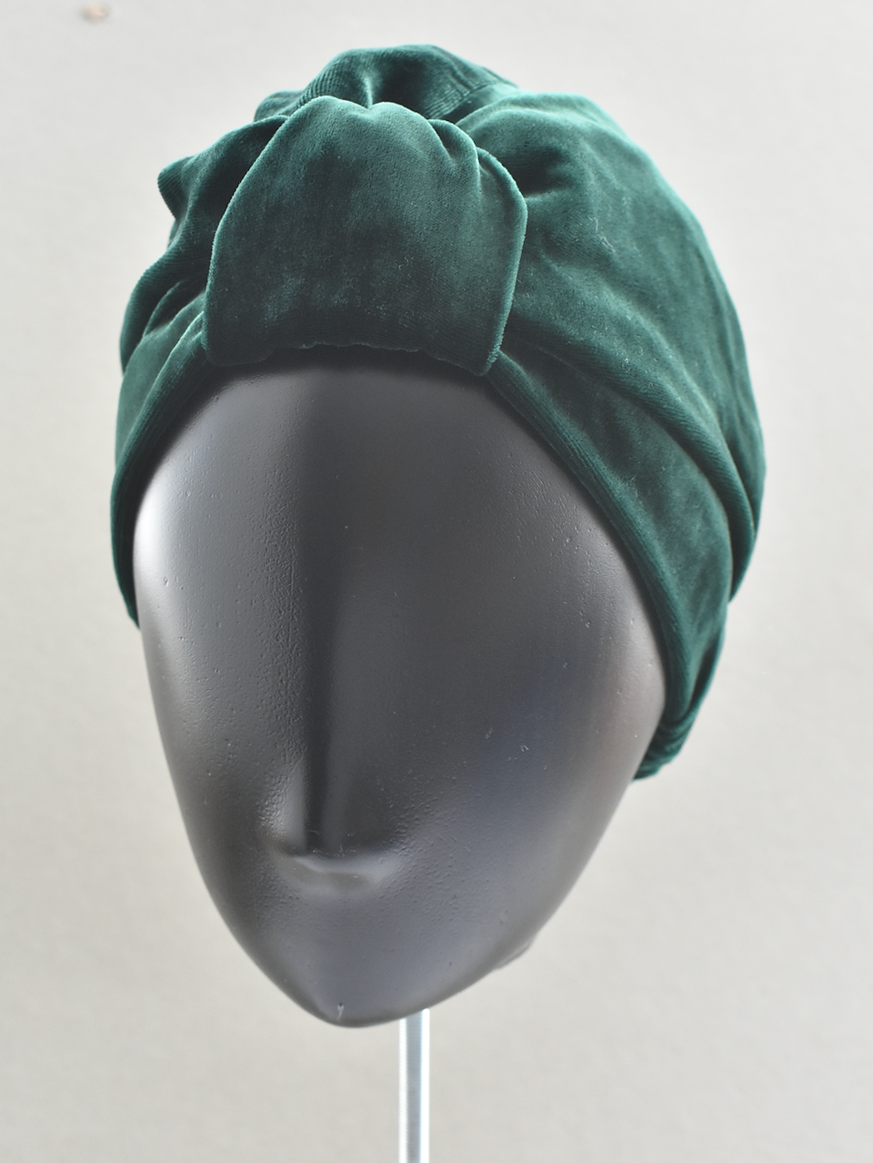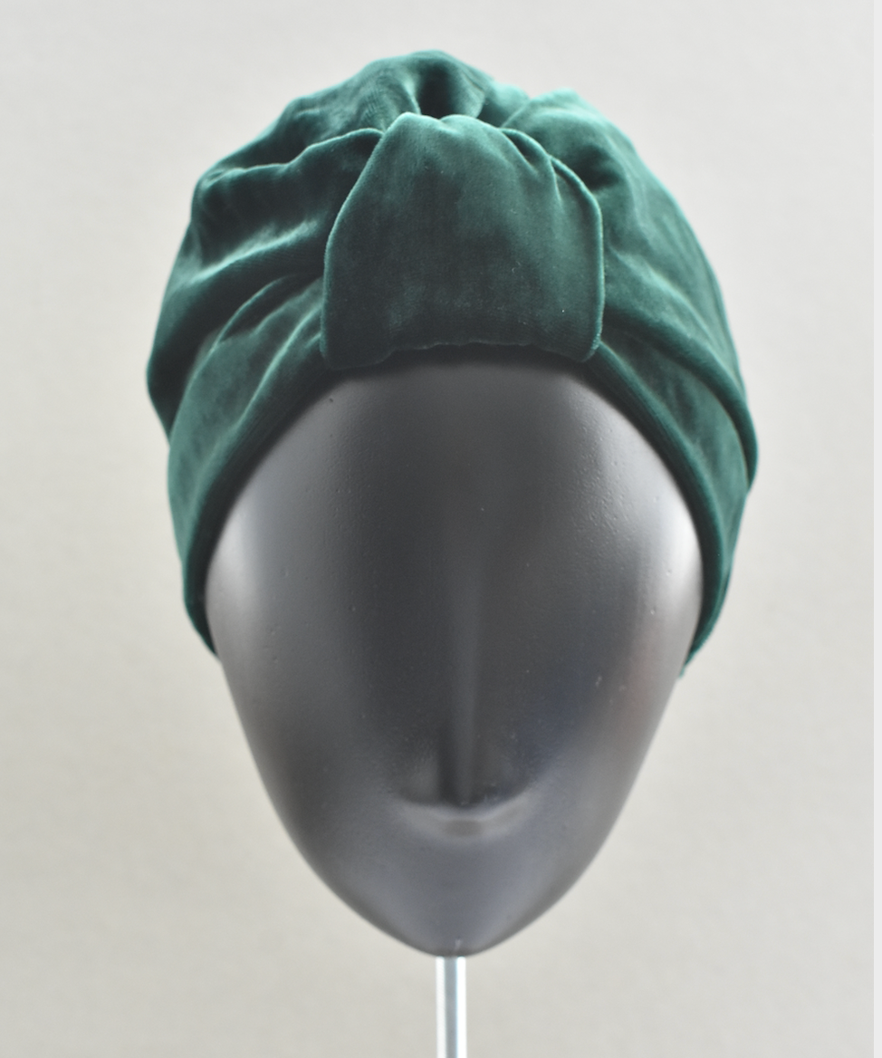 Luxury silk-velvet turban in a beautiful rich and elegant emerald green velvet.