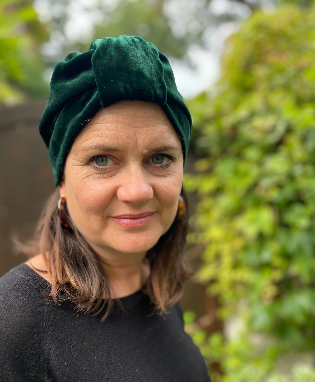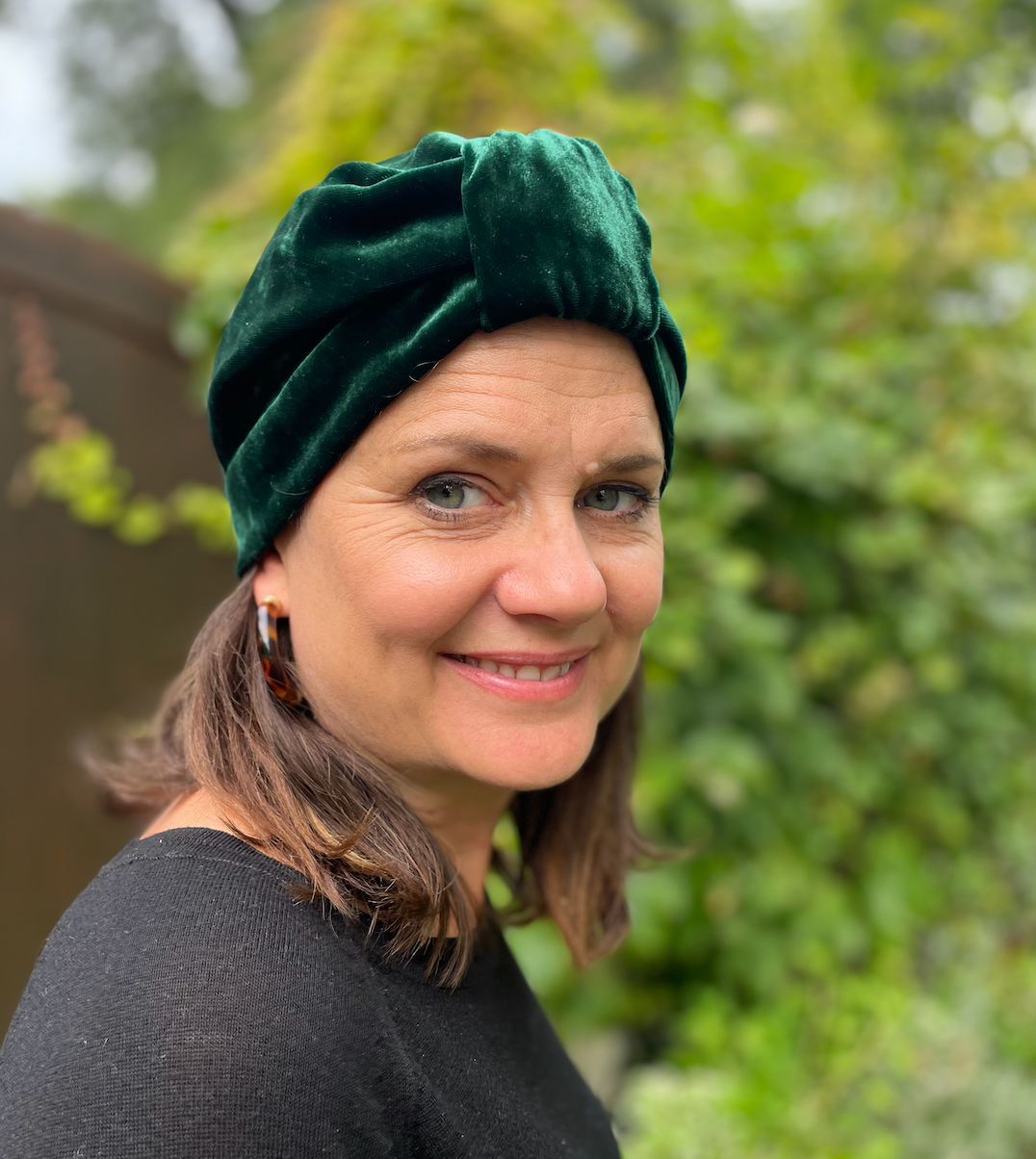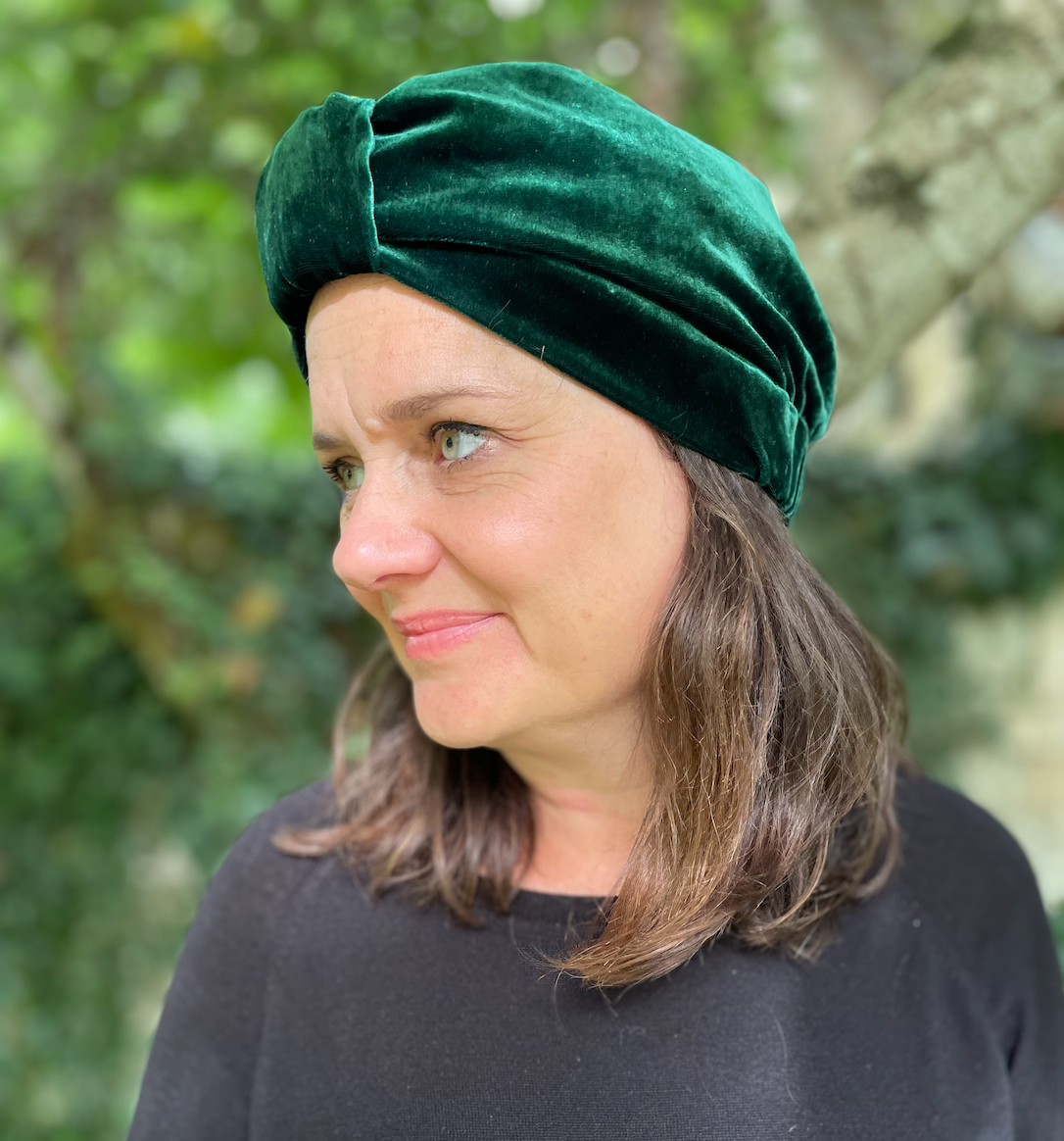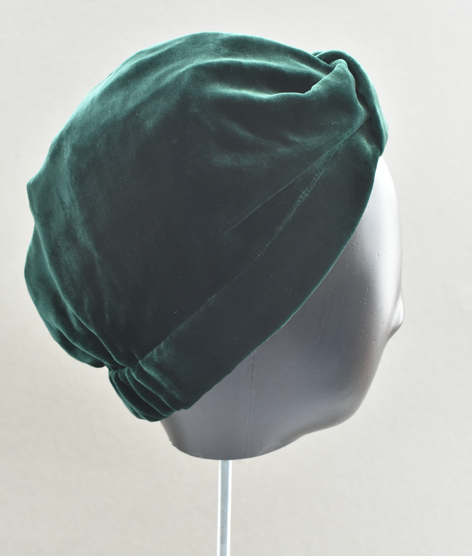 Luxury silk-velvet turban in a beautiful rich and elegant emerald green velvet.