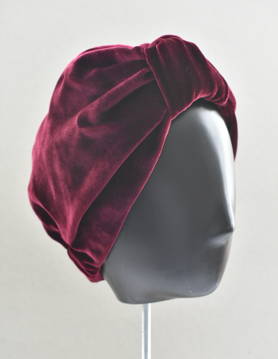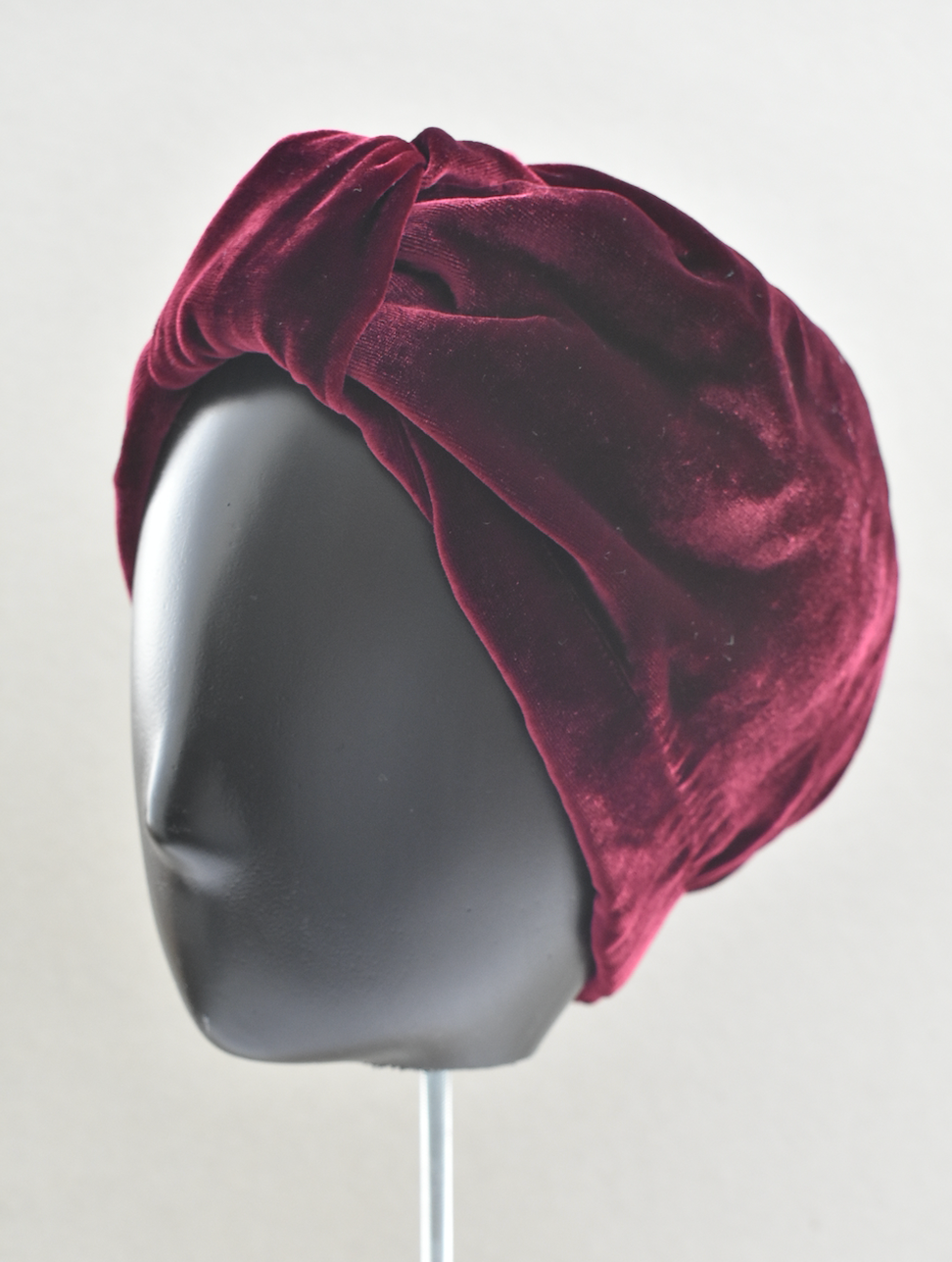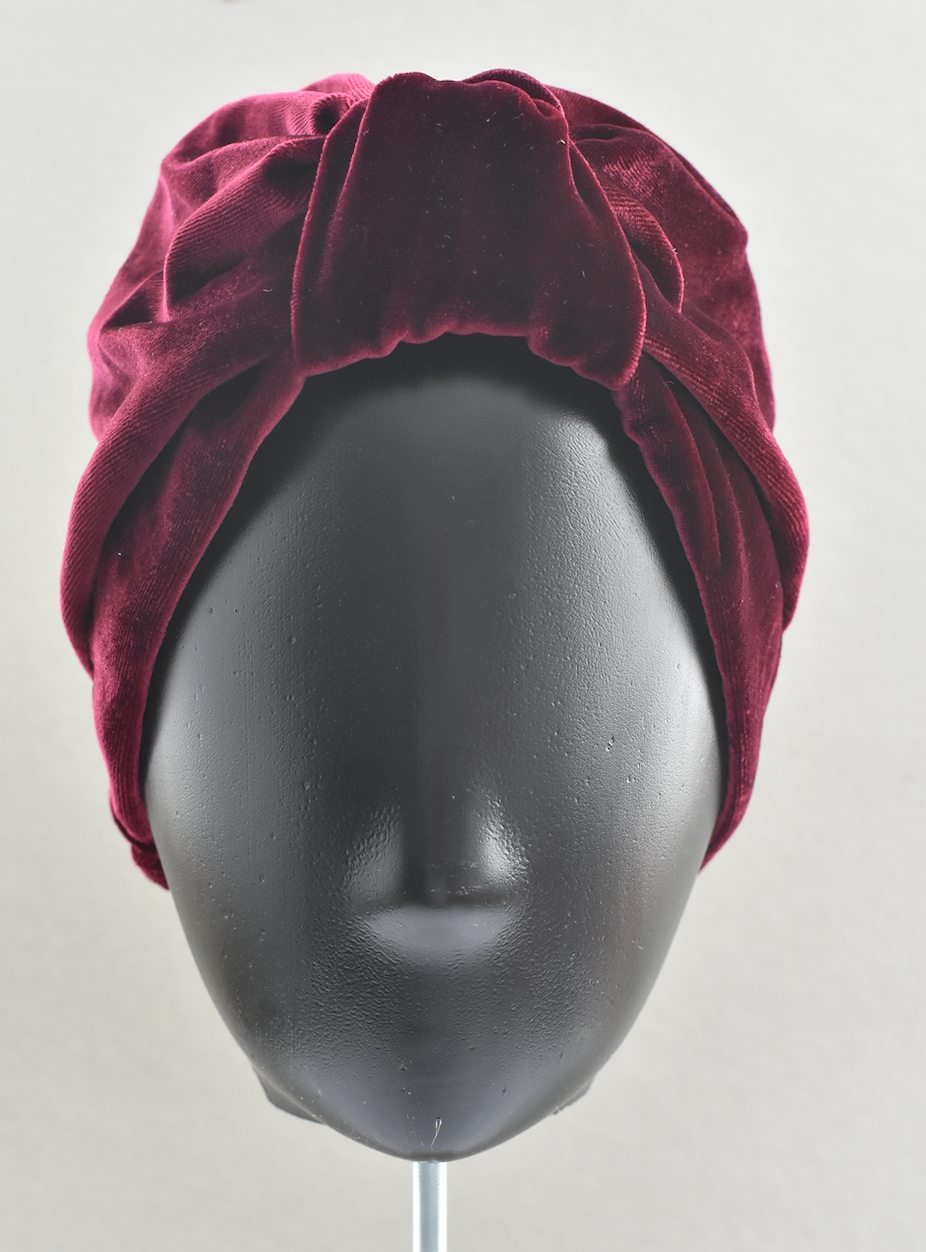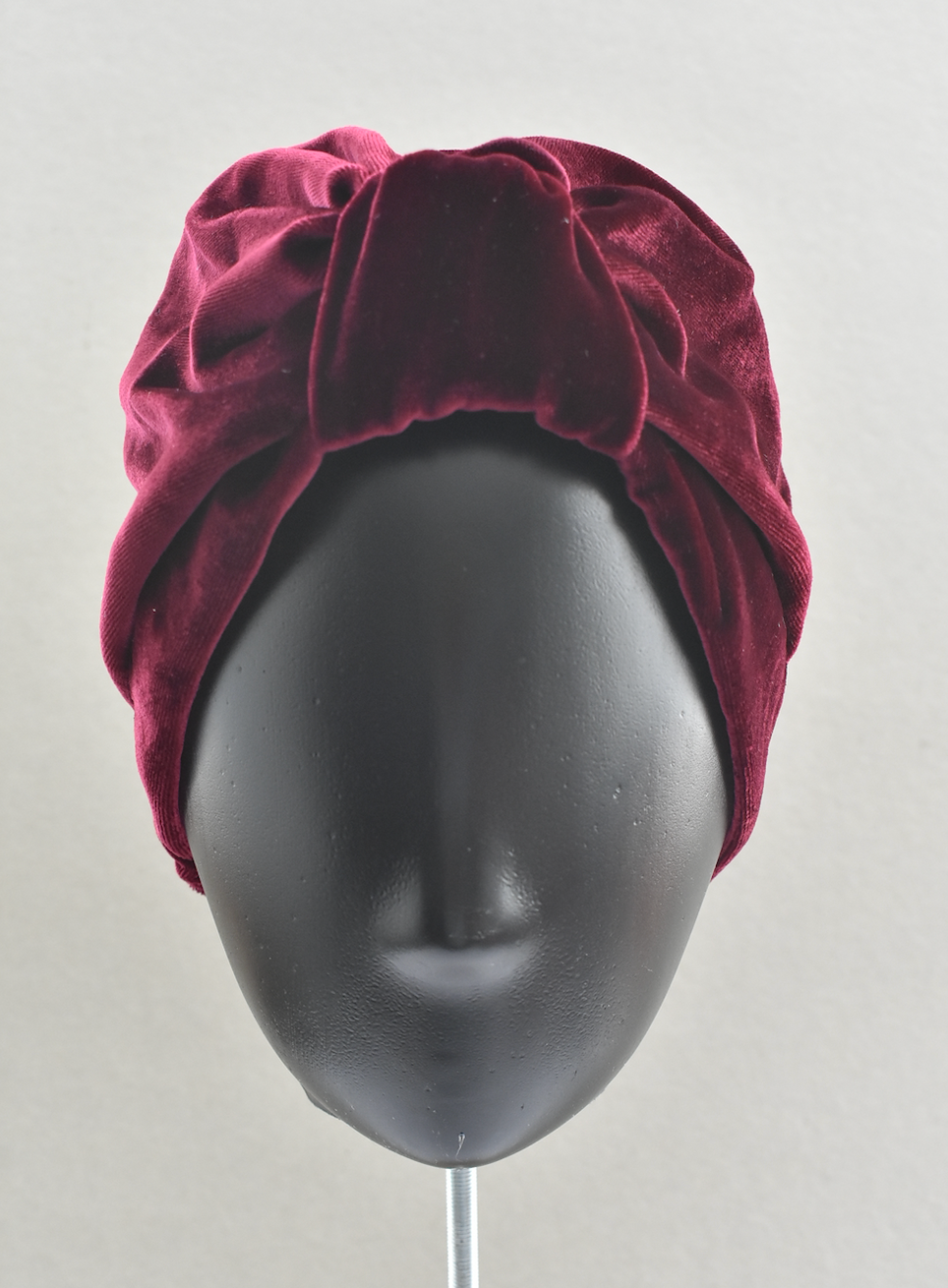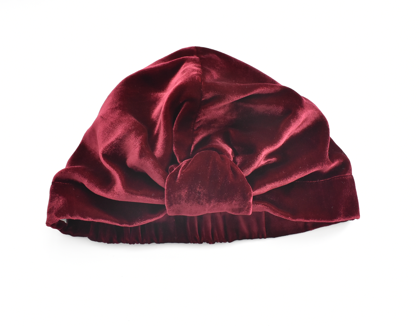 Luxury silk-velvet turban in a beautiful rich ruby red, also known as a ox blood.