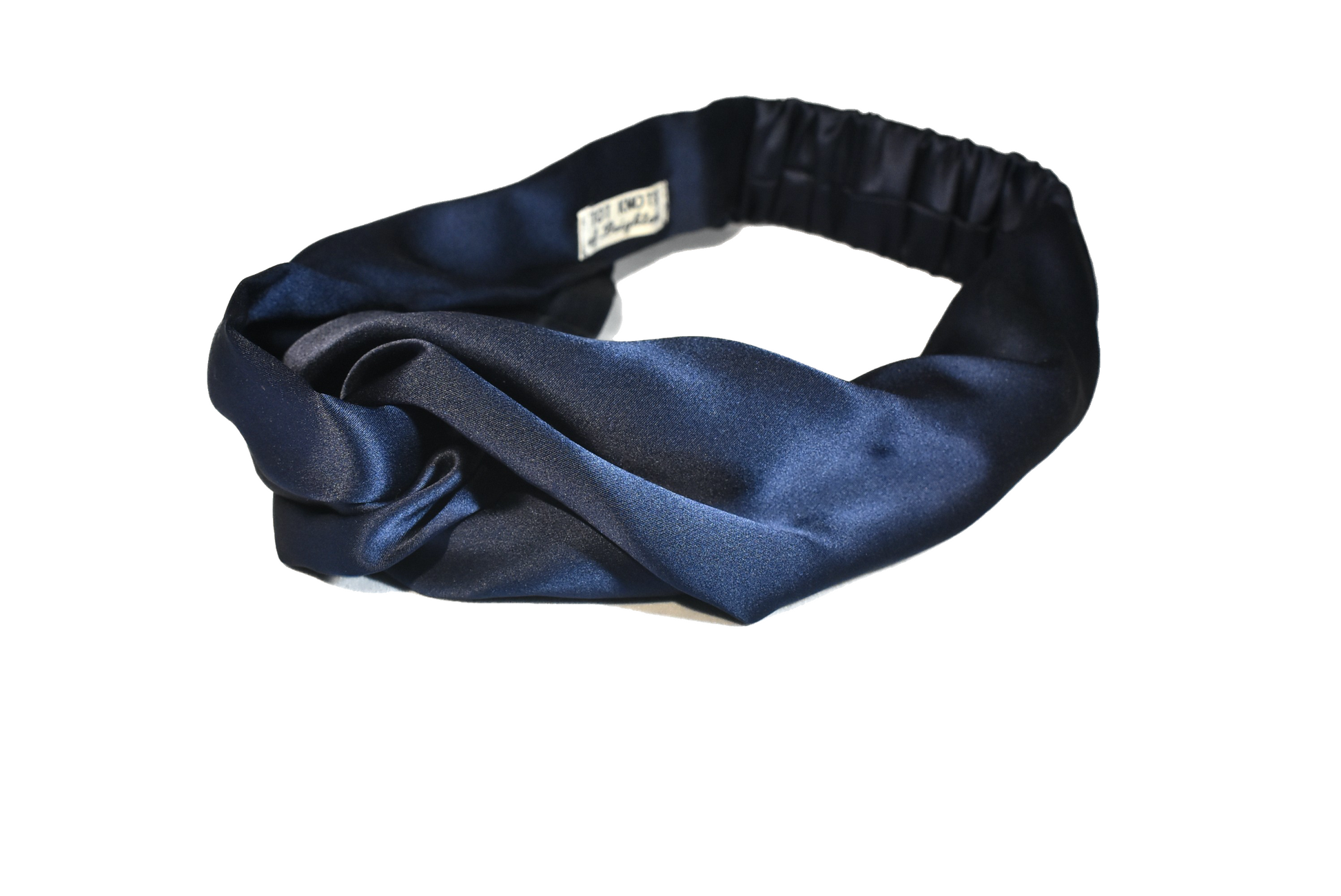 Beautiful handmade Twisted headband made with Mulberry silk satin fabric in a beautiful navy blue tone. We use the finest 100% silk for a super soft and wonderfully luxurious, comfortable and quality finish.