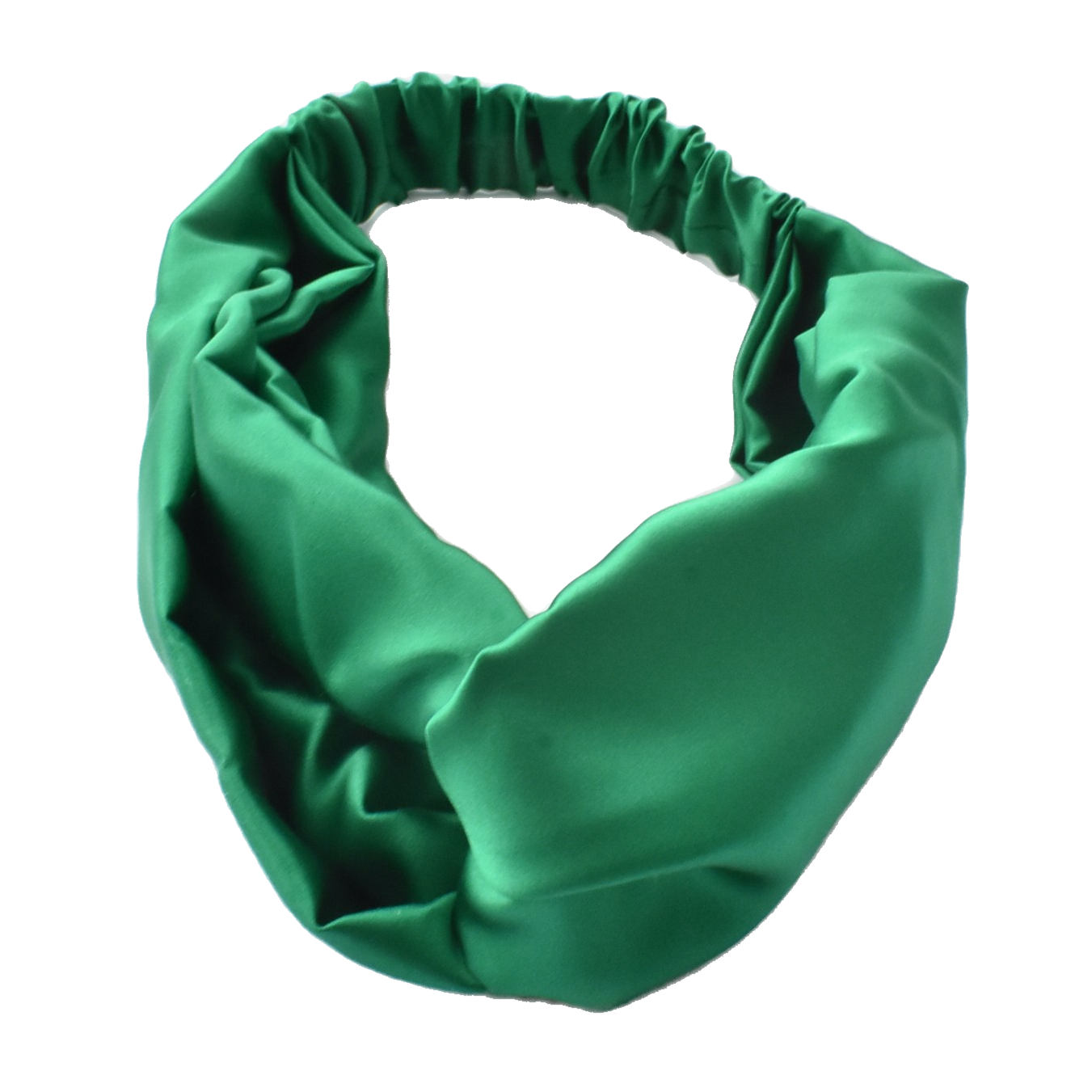Silk Twisted Turban hairband and neck scarf in Emerald Green Mulberry Silk - 100% pure silk satin