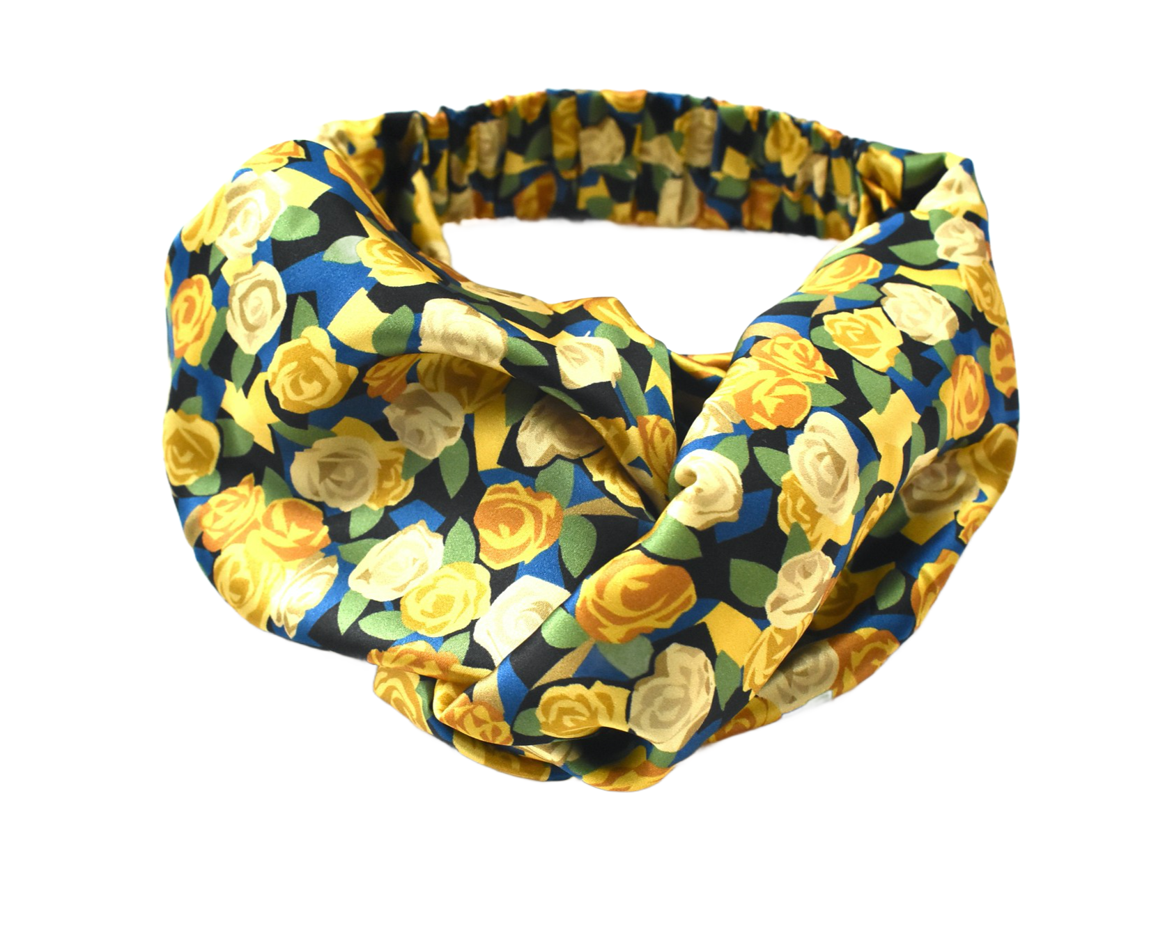 Silk Twisted Turban hairband in Liberty of London Stone Garden Yellow Roses - 100% Silk-Satin