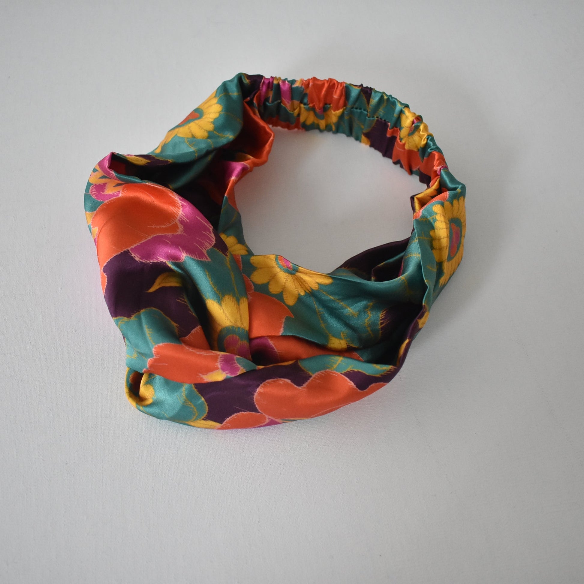 Silk Twisted Turban hairband and neck scarf in Liberty of London Bright Floral Silk Satin - 100% silk