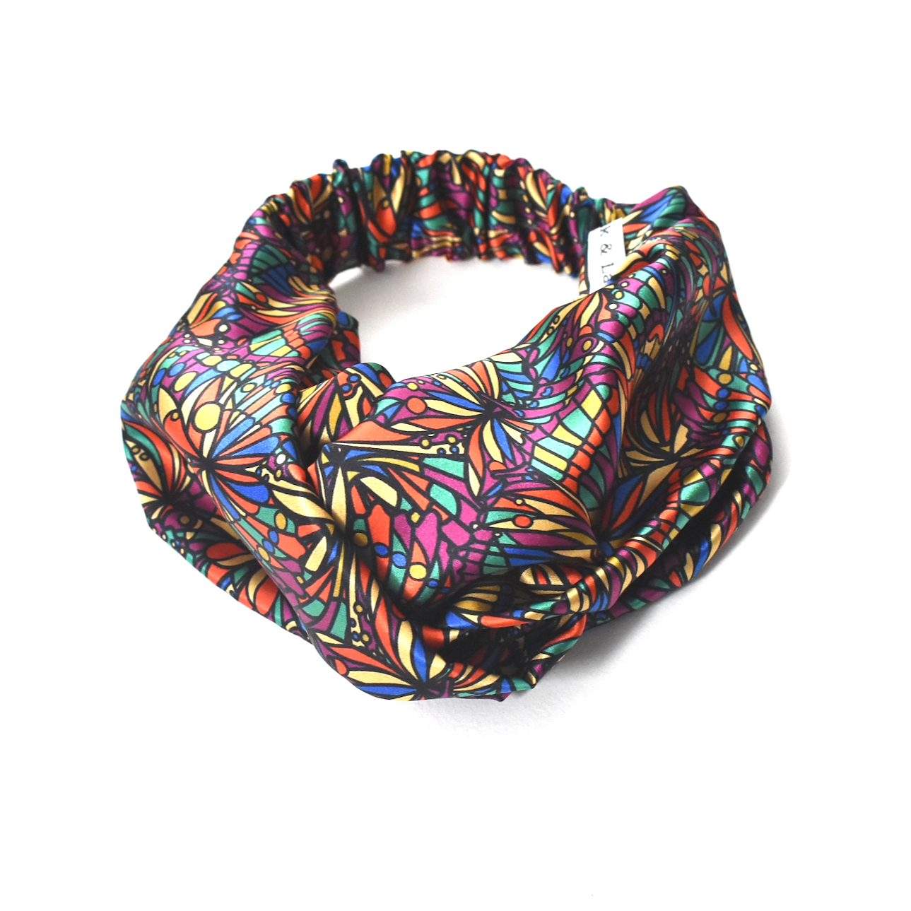 Silk Twisted Turban hairband and neck scarf in Liberty of London Jewel Silk Satin - 100% silk