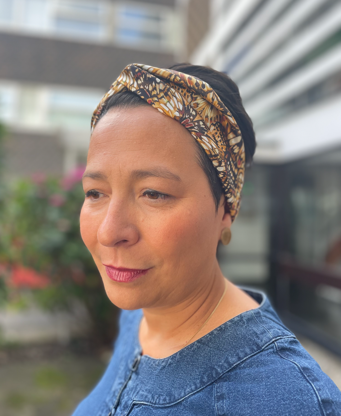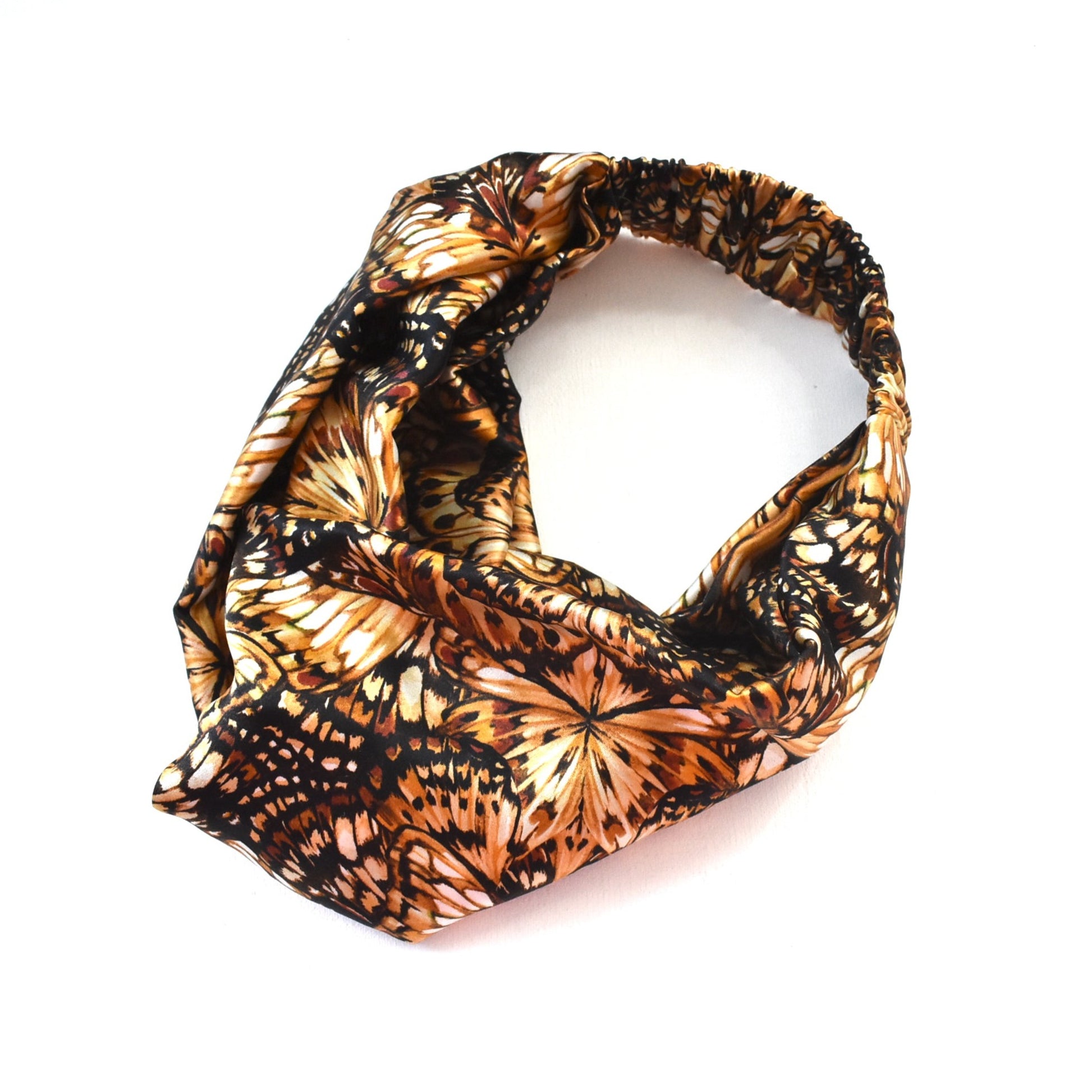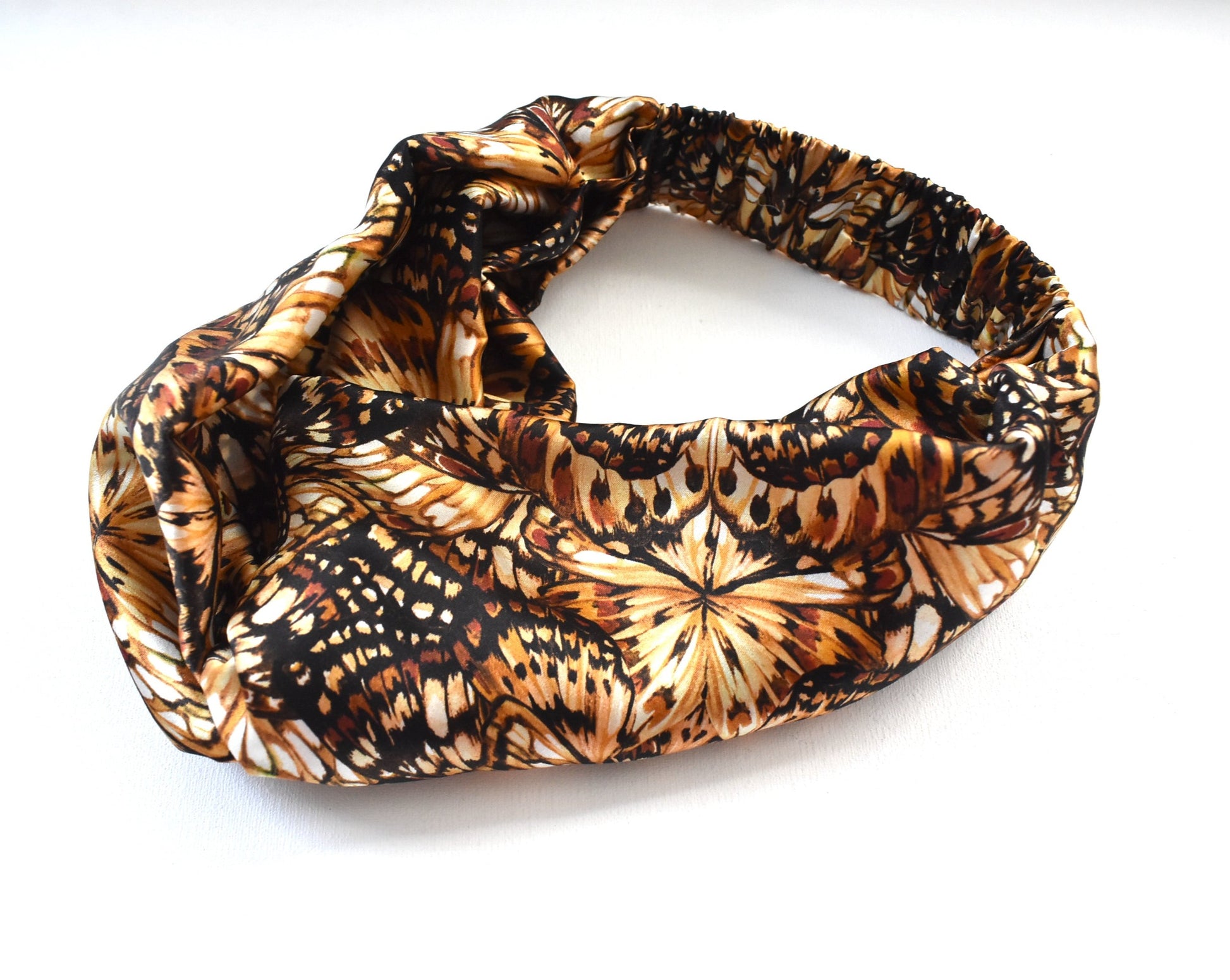Silk Twisted Turban hairband and neck scarf in Liberty of London Kaleidoscope in Brown Silk Satin - 100% silk
