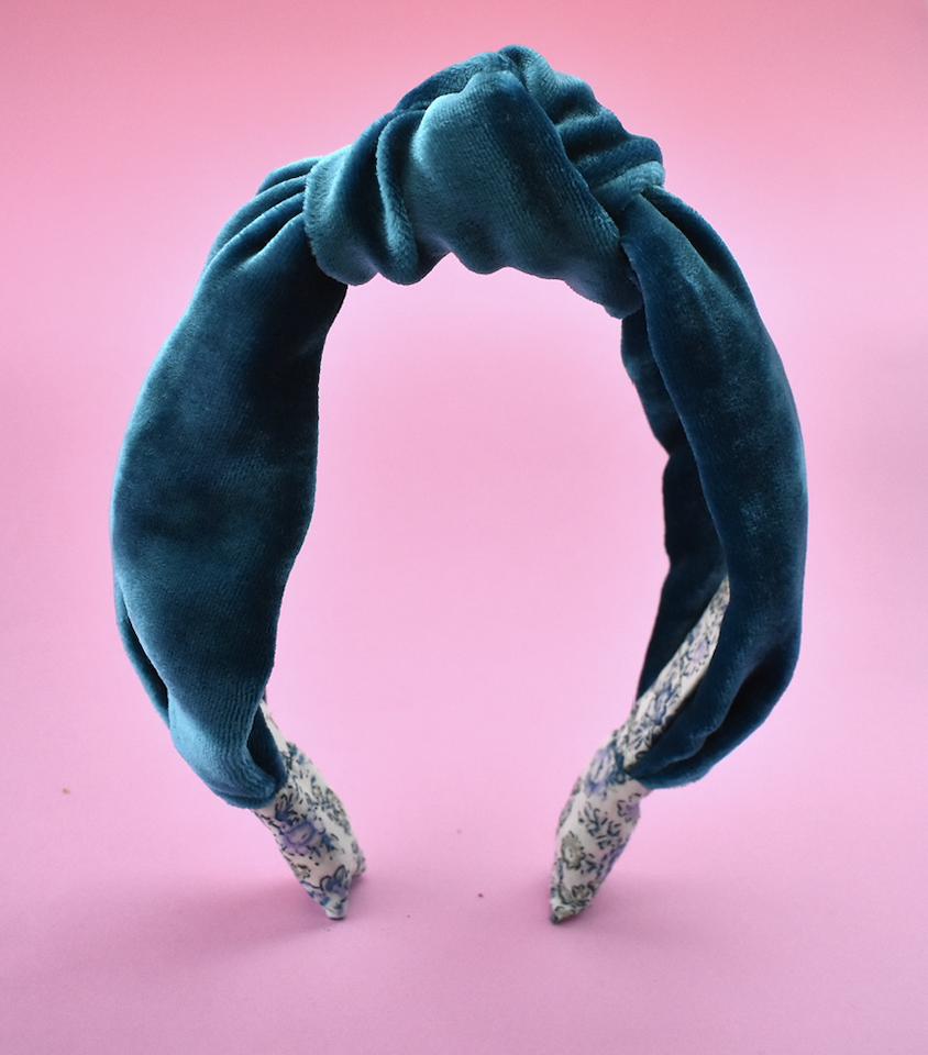 Silk-Velvet Alice band - Teal blue and Floral Liberty print