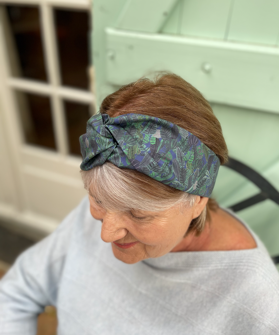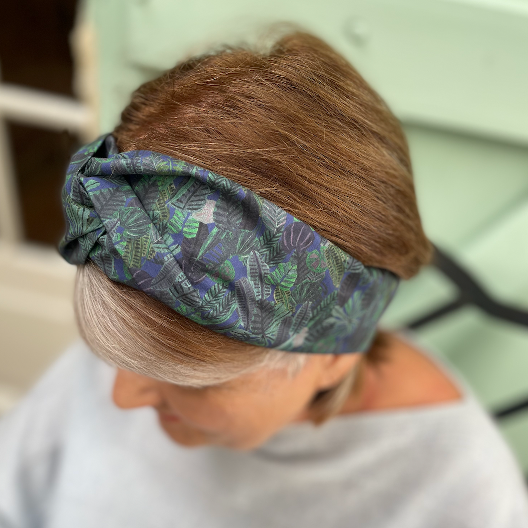 Twisted Turban Headband - Liberty of London Chaparrel - Navy and Green Fern Print