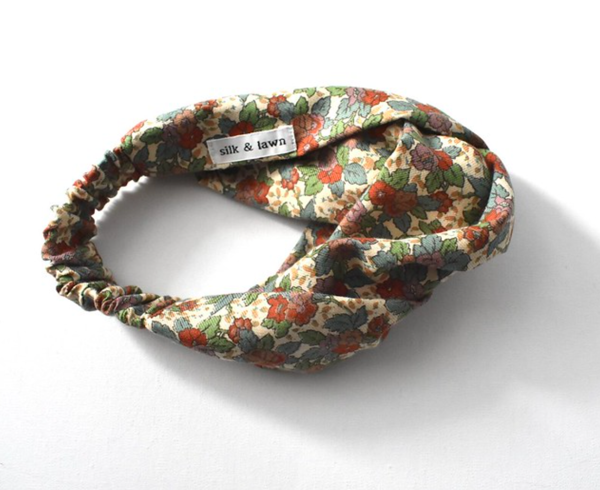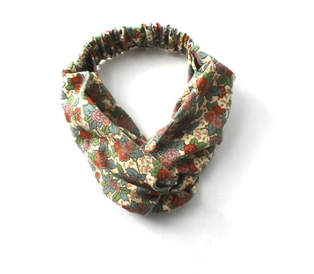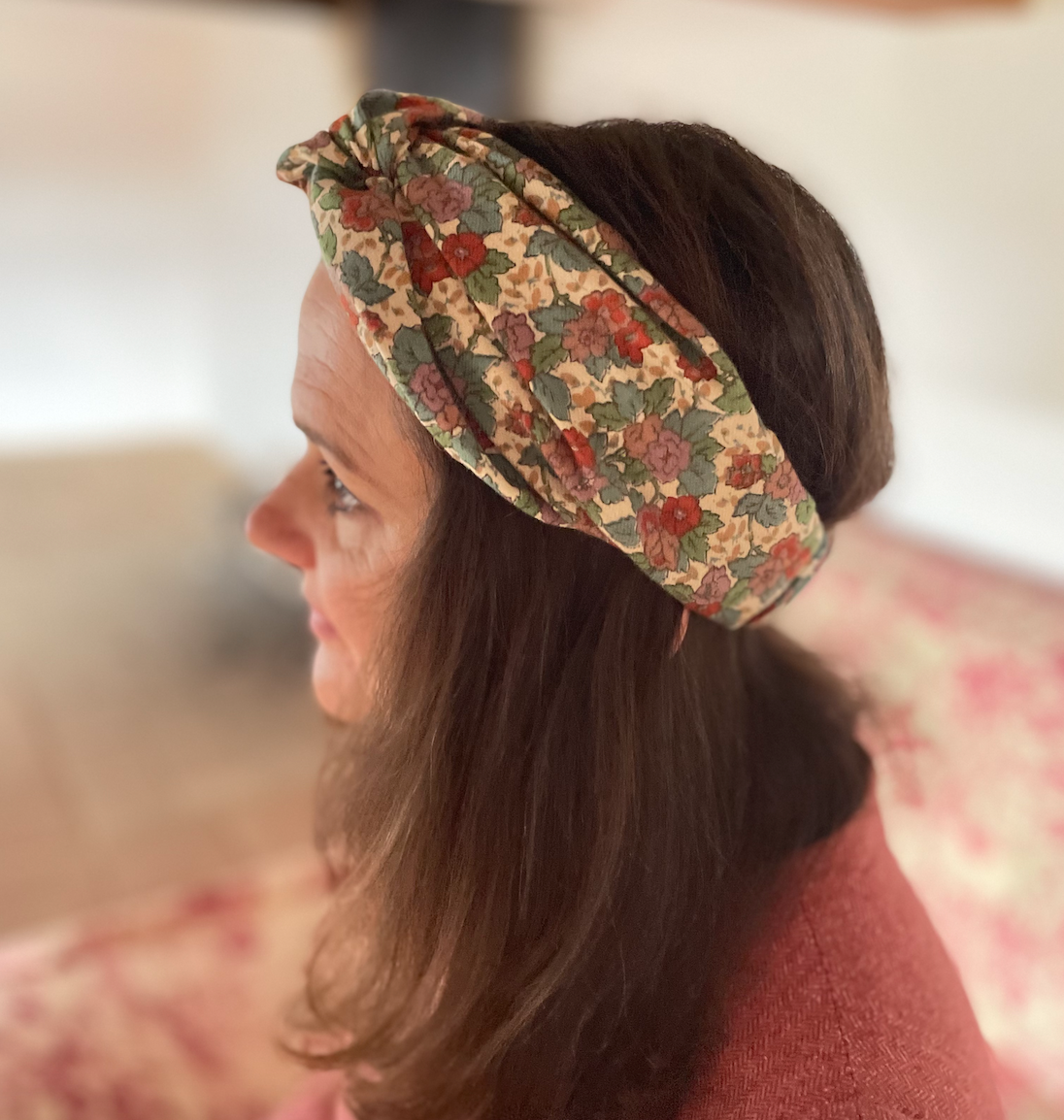 Beautiful handmade Liberty of London print twisted headband made from the finest Liberty of London print Lantana 80% Cotton + 20% wool - for a beauitfully soft brushed cotton feel.