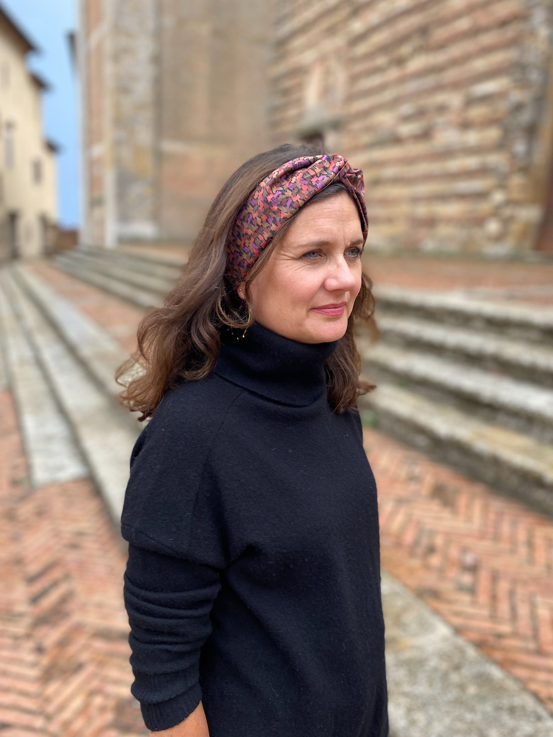 Our signature twisted headband design has been handmade with the finest, iconic Liberty of London Tana Lawn fabric, 100% cotton, for a super soft and wonderfully comfortable and quality finish. The wide band gives great coverage and style to your everyday look. Worn in a bandana or classic hair band style.