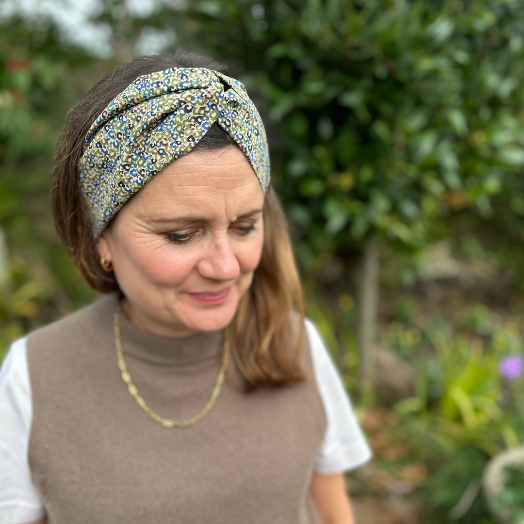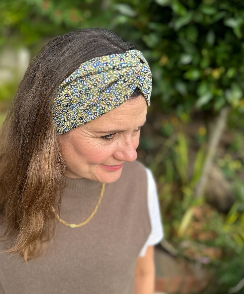 Our signature twisted headband design has been handmade with the finest, iconic Liberty of London Tana Lawn fabric, 100% cotton, for a super soft and wonderfully comfortable and quality finish. The wide band gives great coverage and style to your everyday look. Worn in a bandana or classic hair band style.